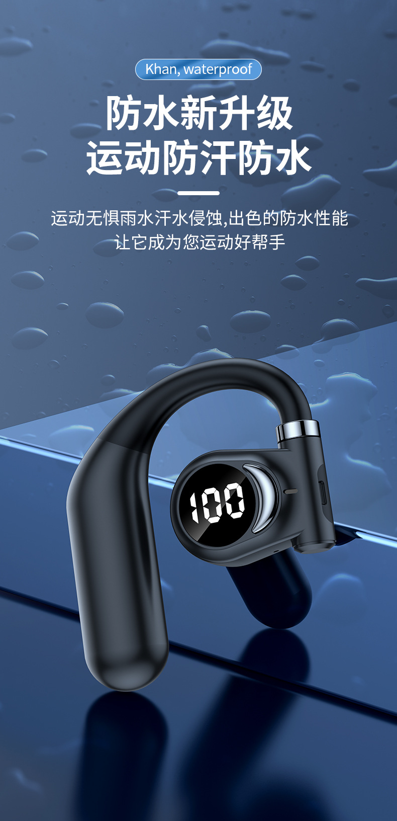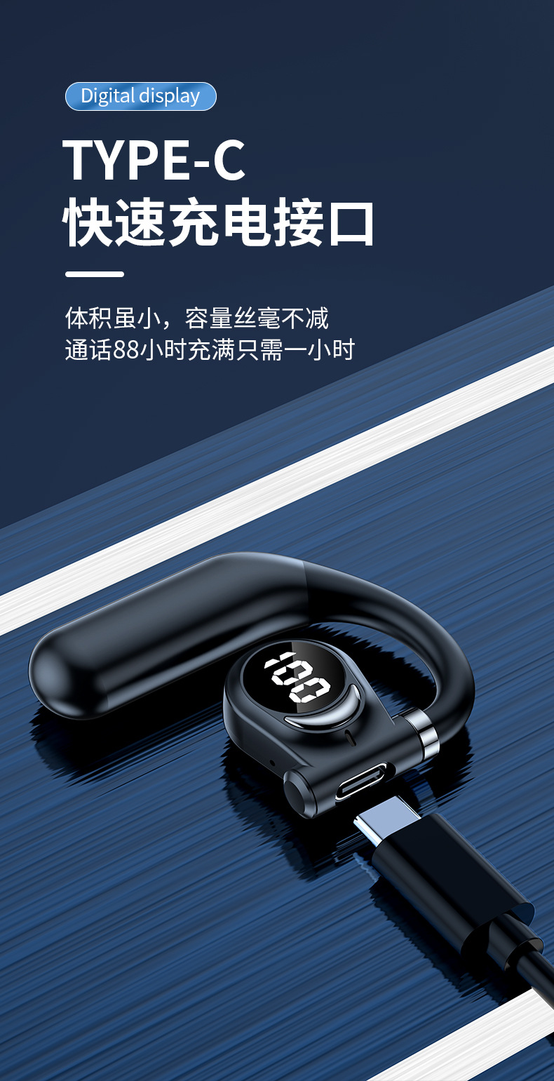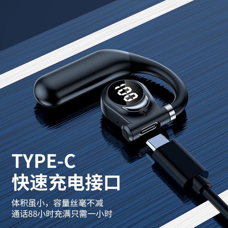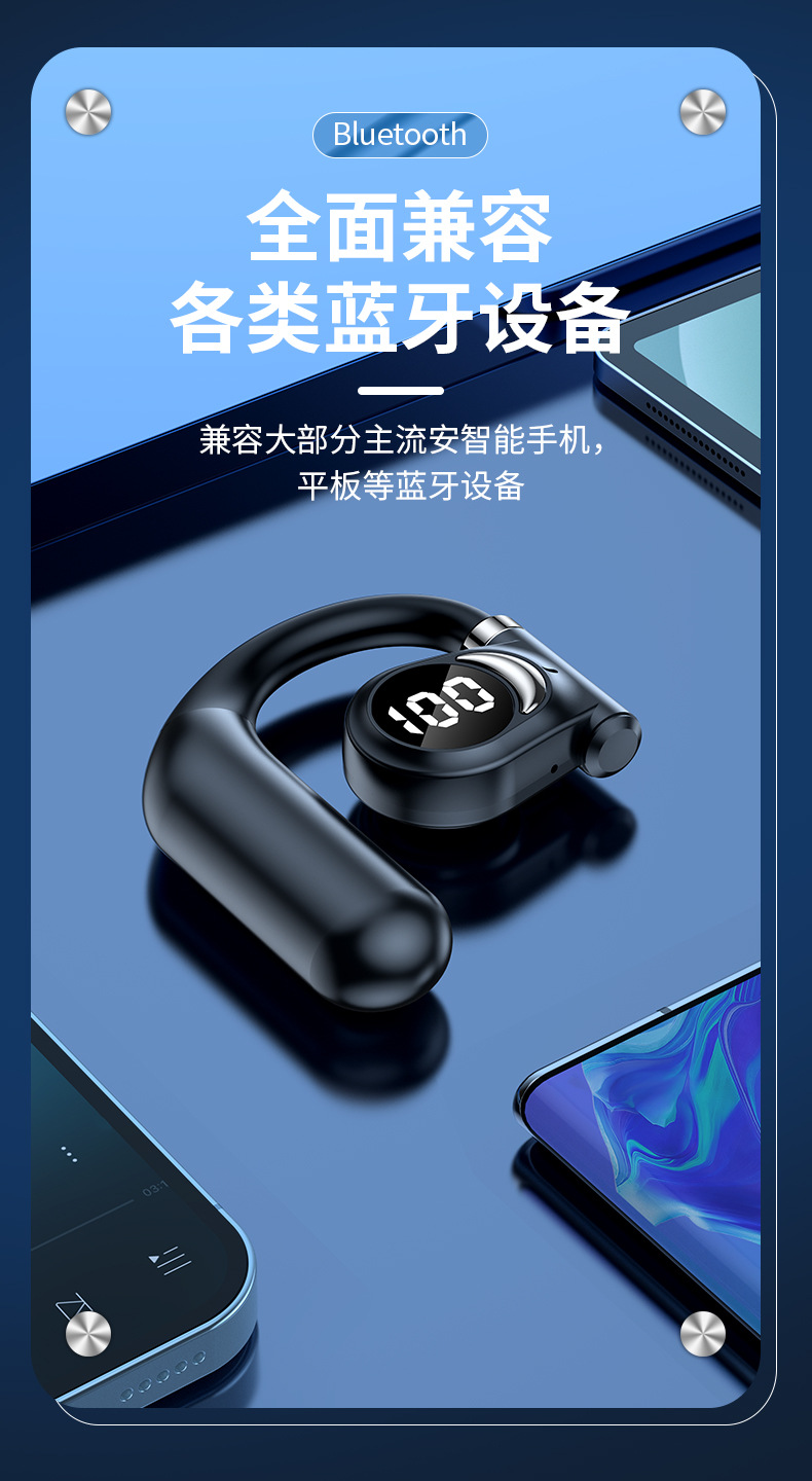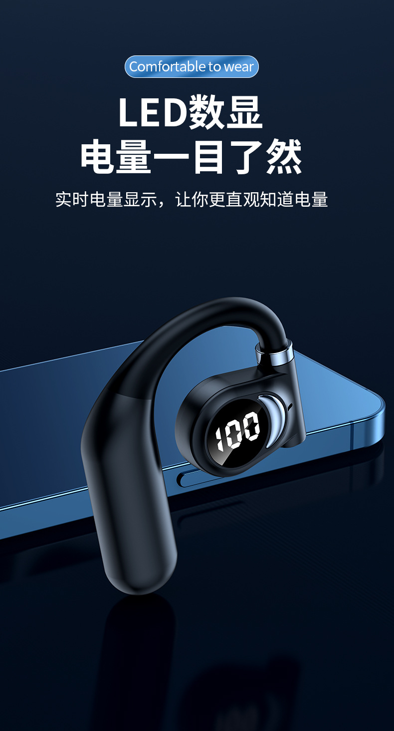 商务单边无线蓝牙耳机久戴不痛运动跑步超长续航数显挂耳式耳机