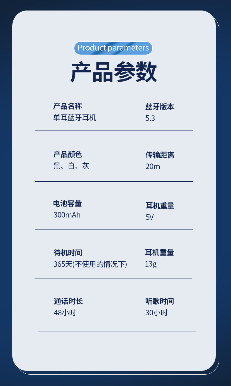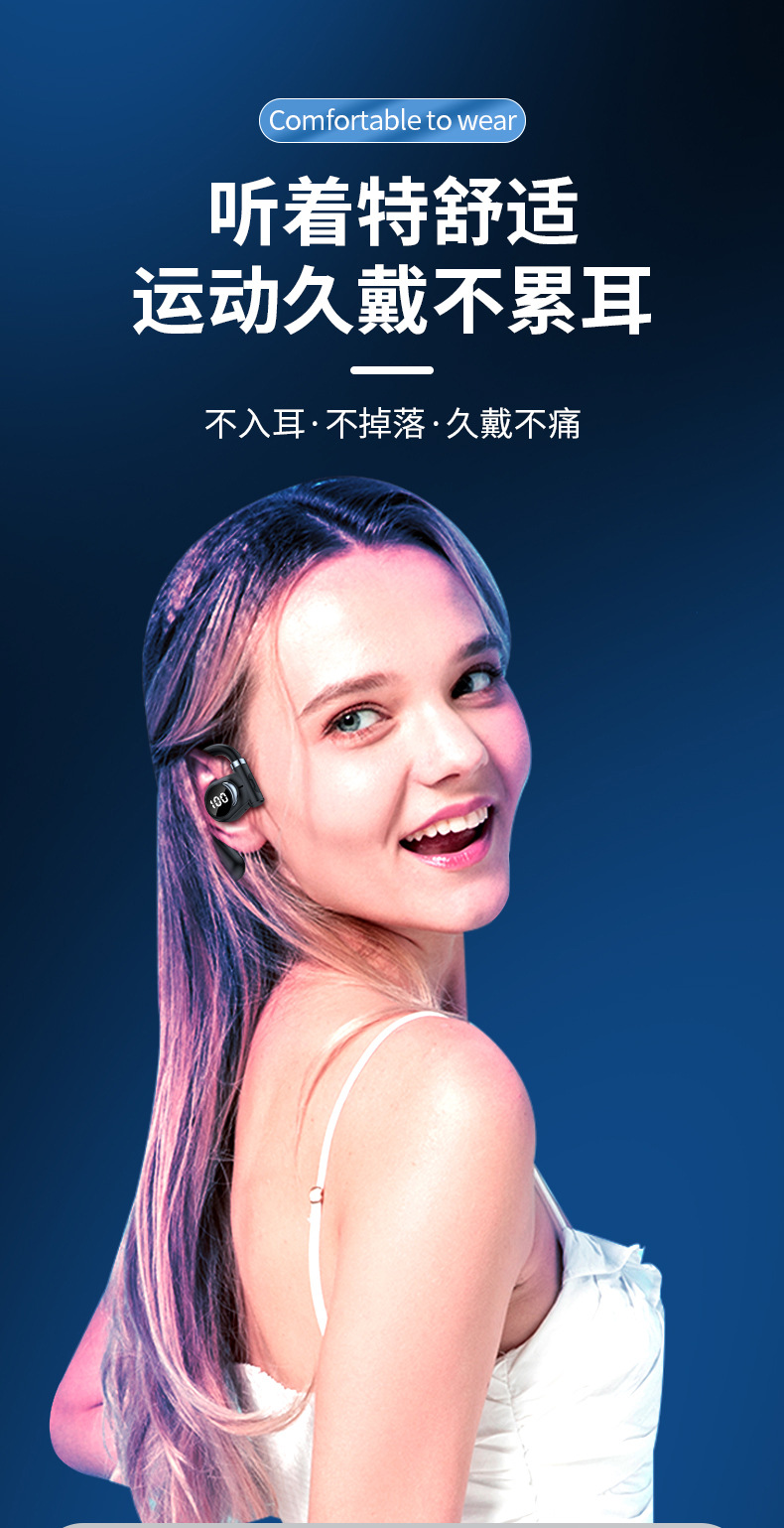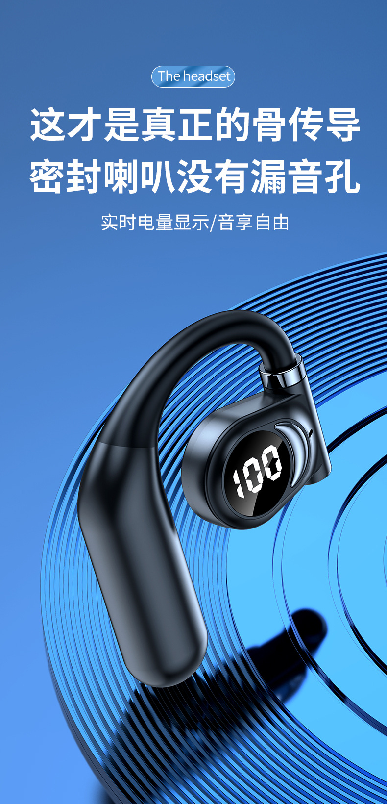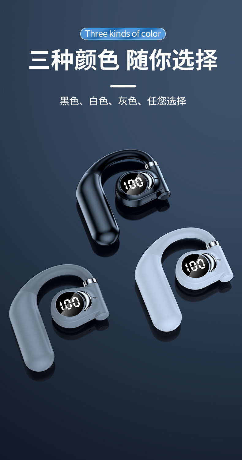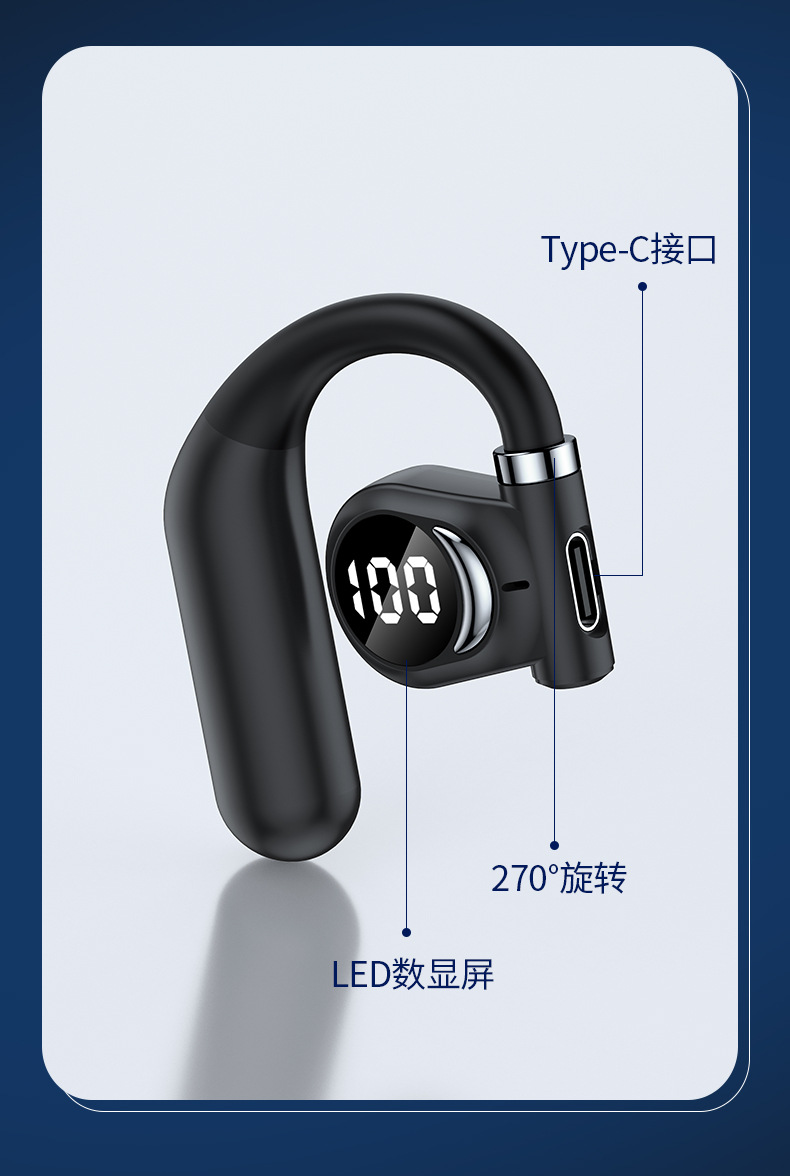 商务单边无线蓝牙耳机久戴不痛运动跑步超长续航数显挂耳式耳机
