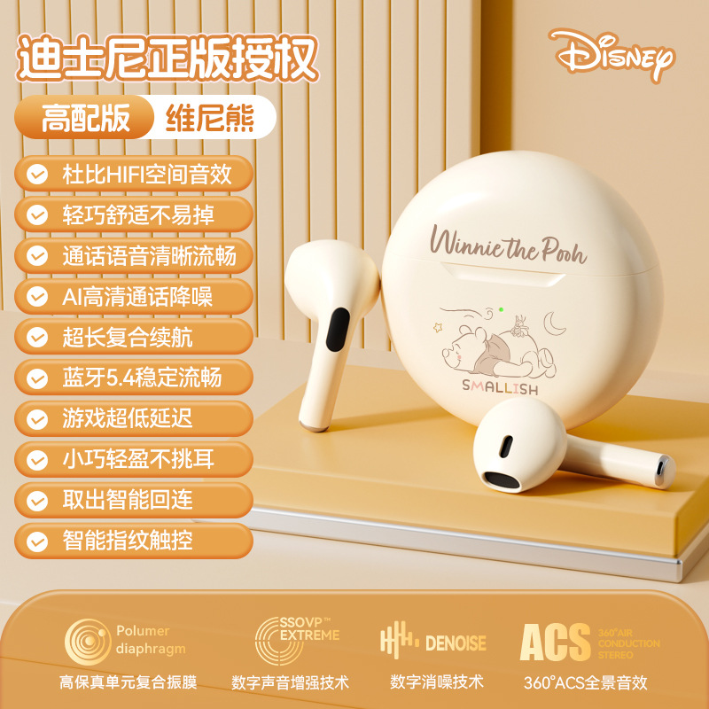 迪士尼蓝牙耳机j6 立体声入耳式超长续航可爱卡通迷你