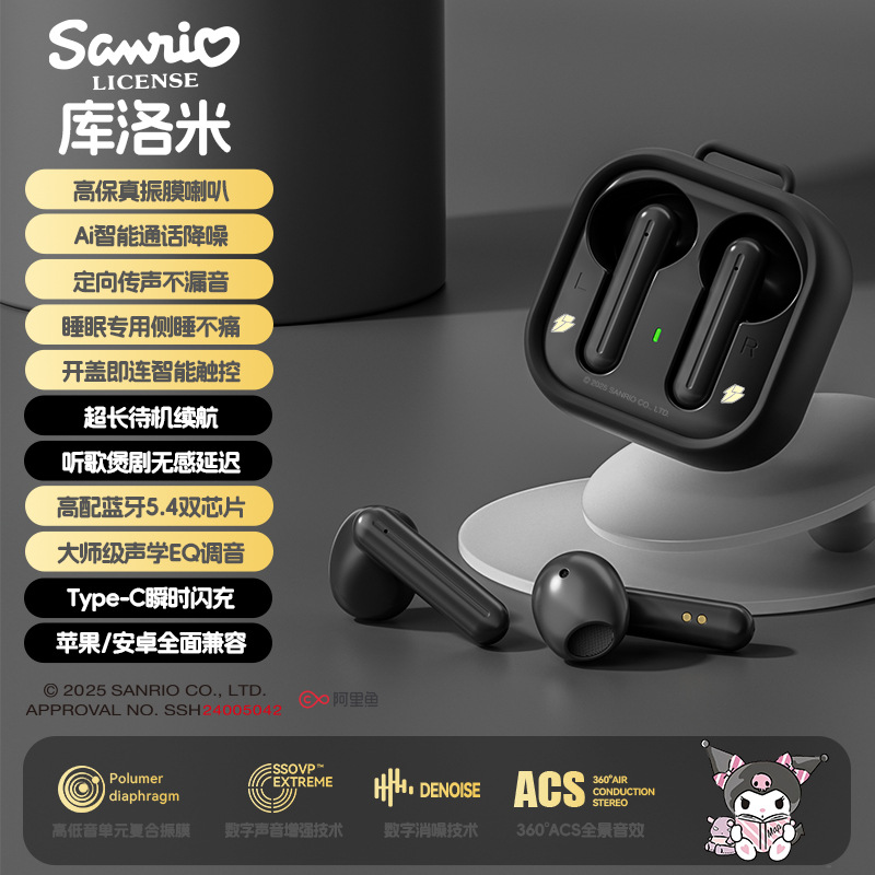三丽鸥蓝牙耳机H19无线蓝牙耳机卡通迷你可爱半入耳式超长续航