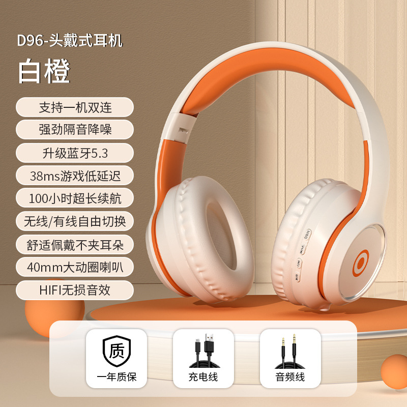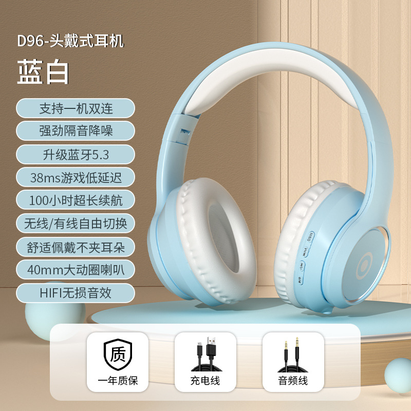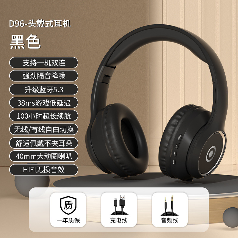 跨境D96蓝牙耳机头戴式无线可插卡降噪电竞游戏超长续航手机通用