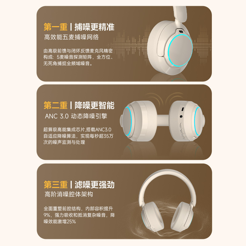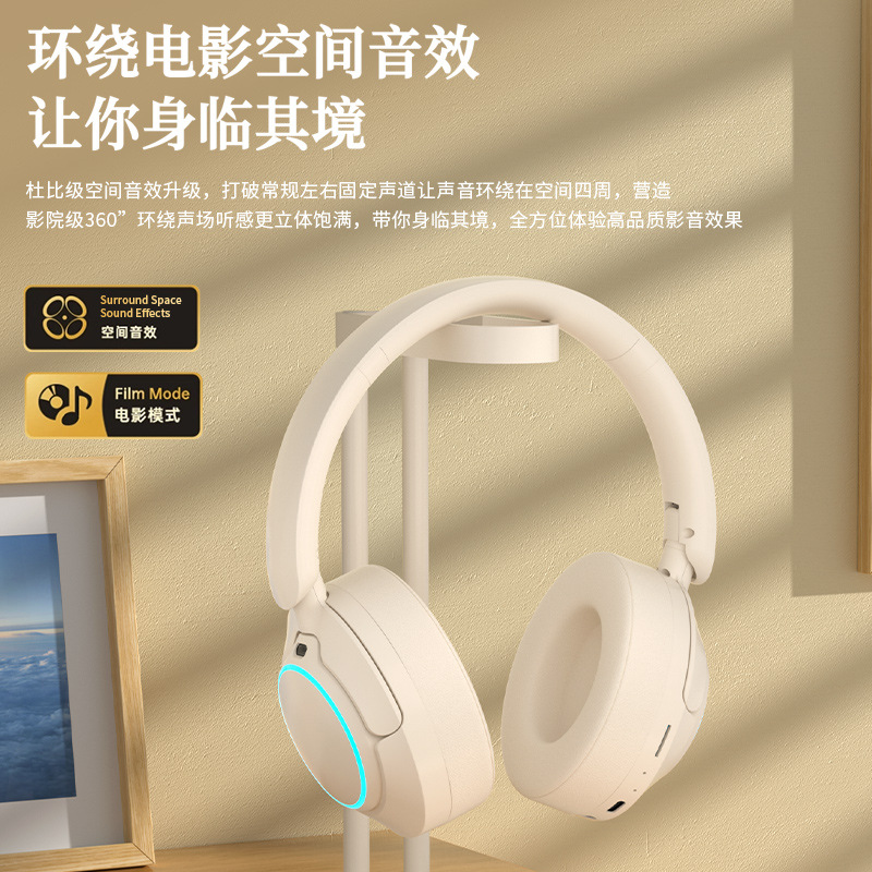 跨境私模发光ANC主动降噪头戴式蓝牙耳机无线可插卡电竞游戏耳麦