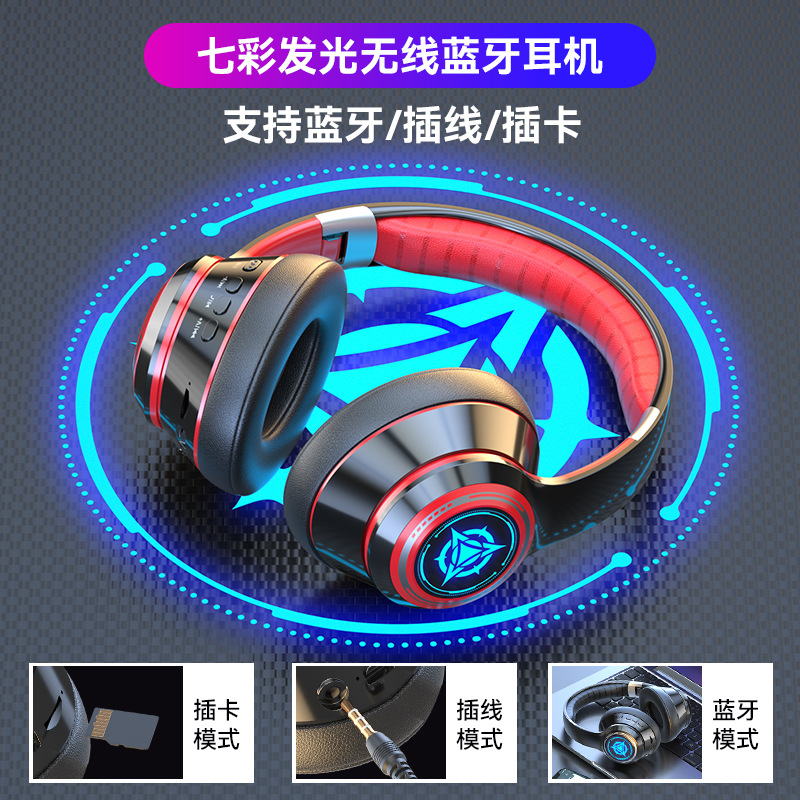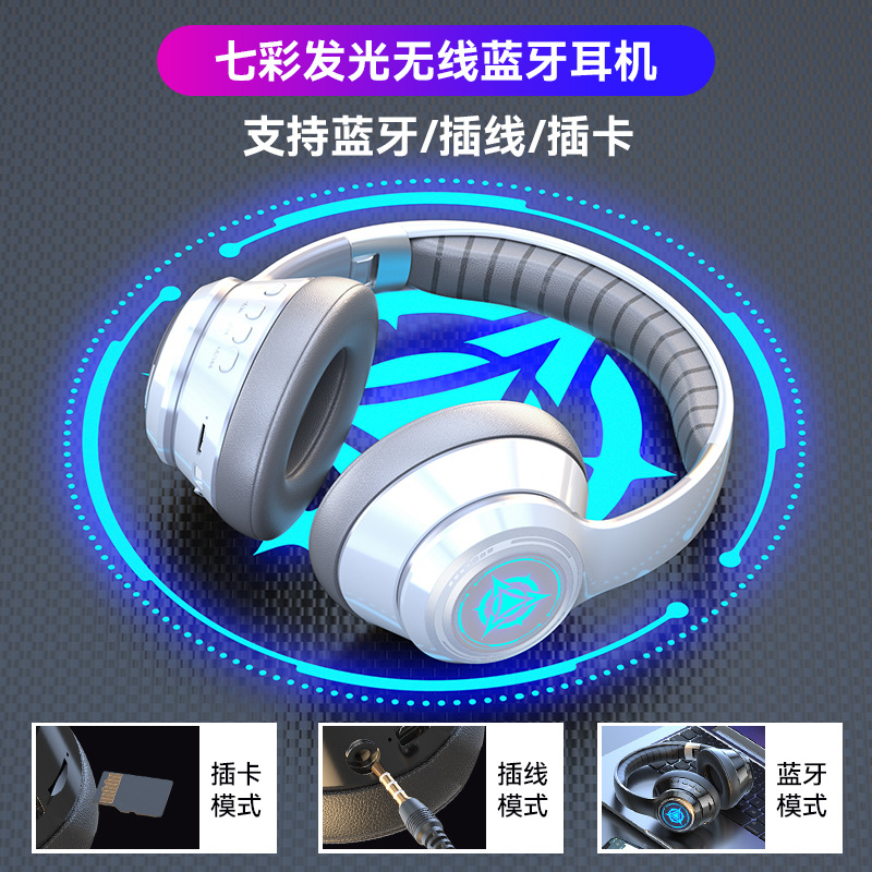 2025新款私模发光蓝牙耳机头戴式无线可插卡网课电竞游戏手机通用