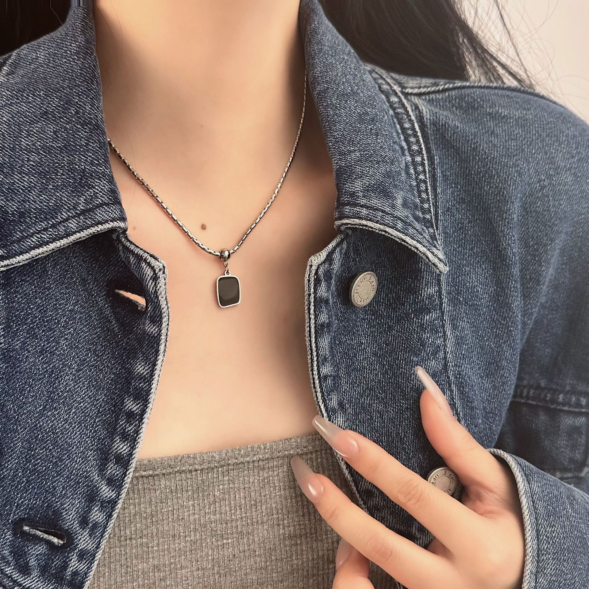 小众设计感吊牌钛钢项链女新款简约百搭毛衣链子高级配饰女