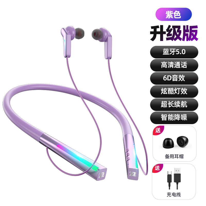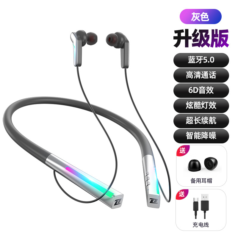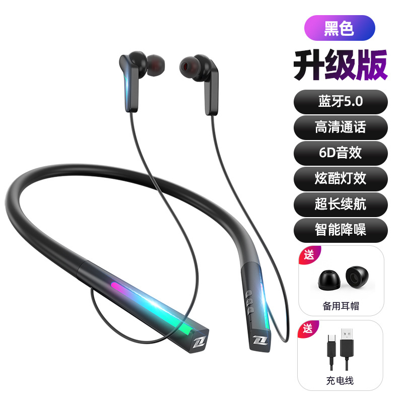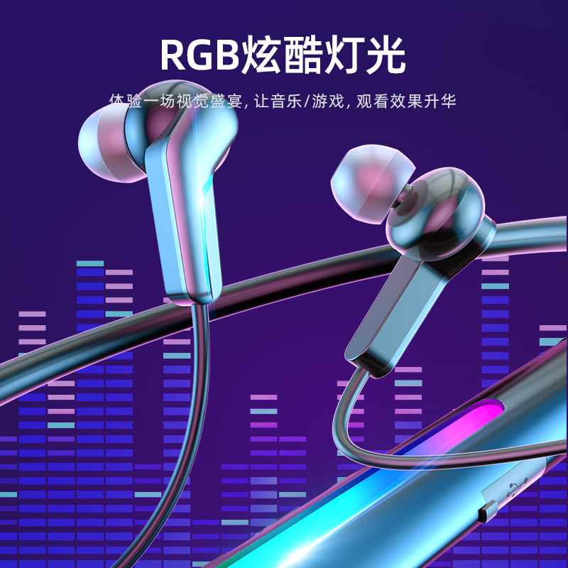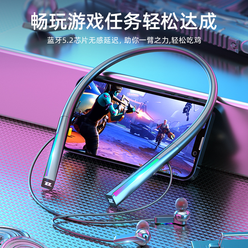 跨境私模无线蓝牙耳机颈挂脖式入耳式立体音电竞游戏运动超长续航