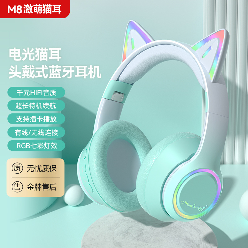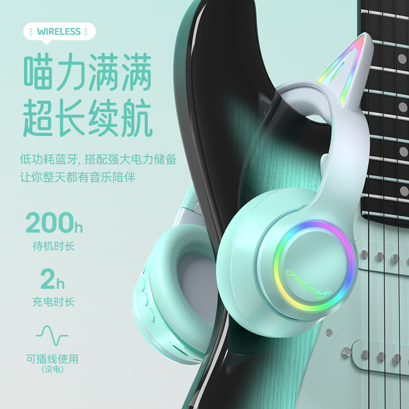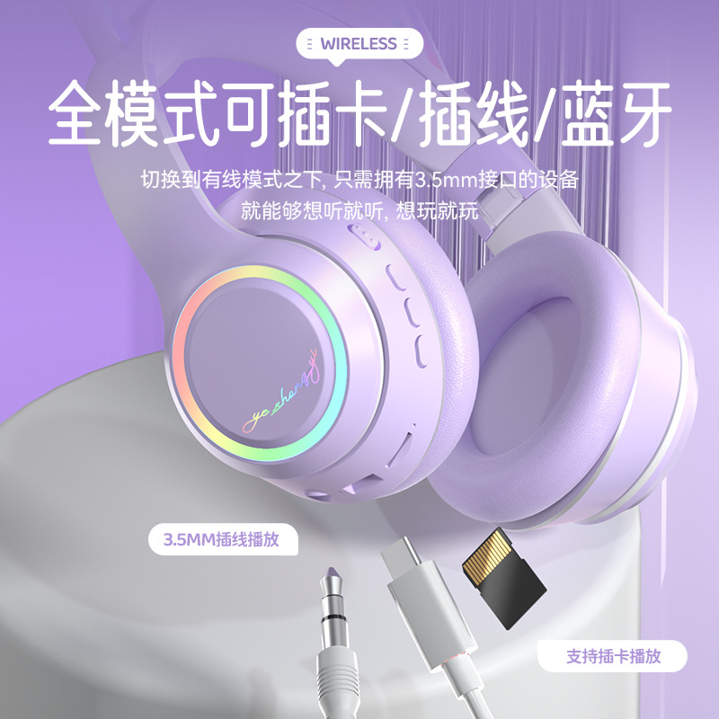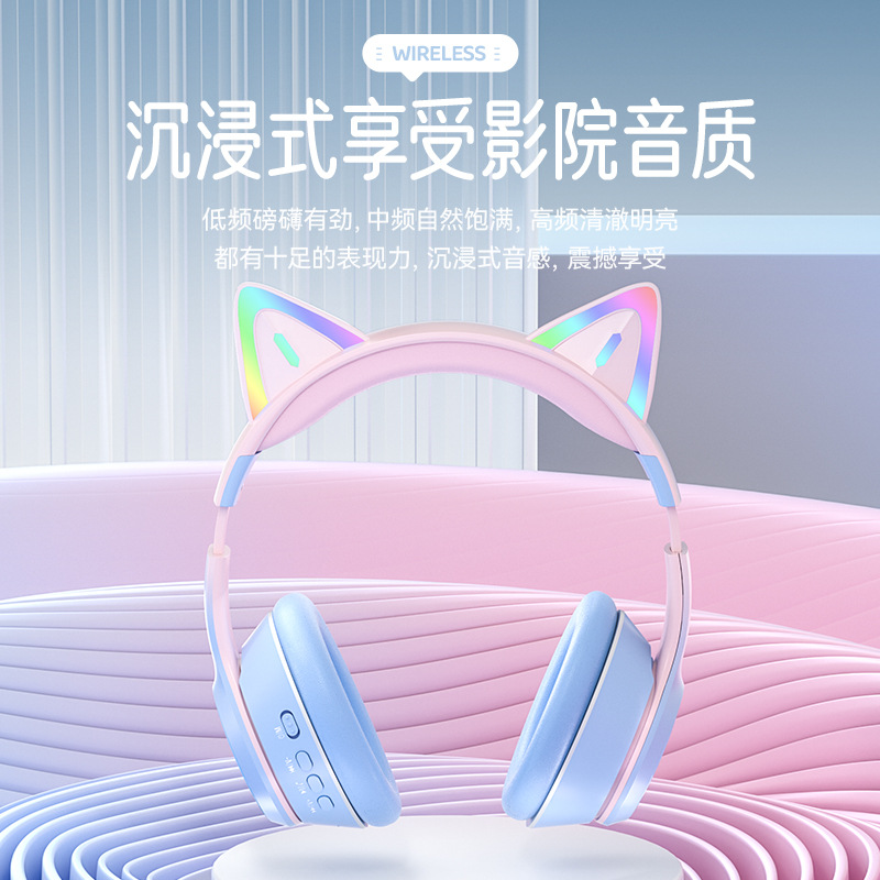 猫耳朵蓝牙耳机头戴式无线5.3发光插卡网课电竞游戏生日礼品 耳麦