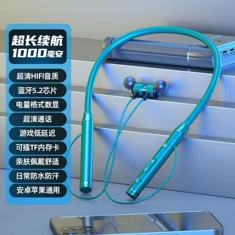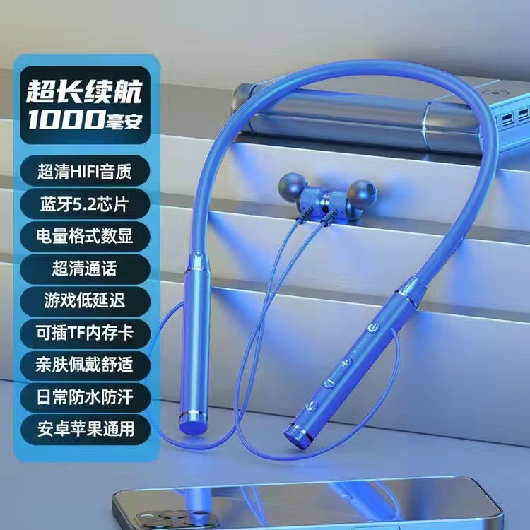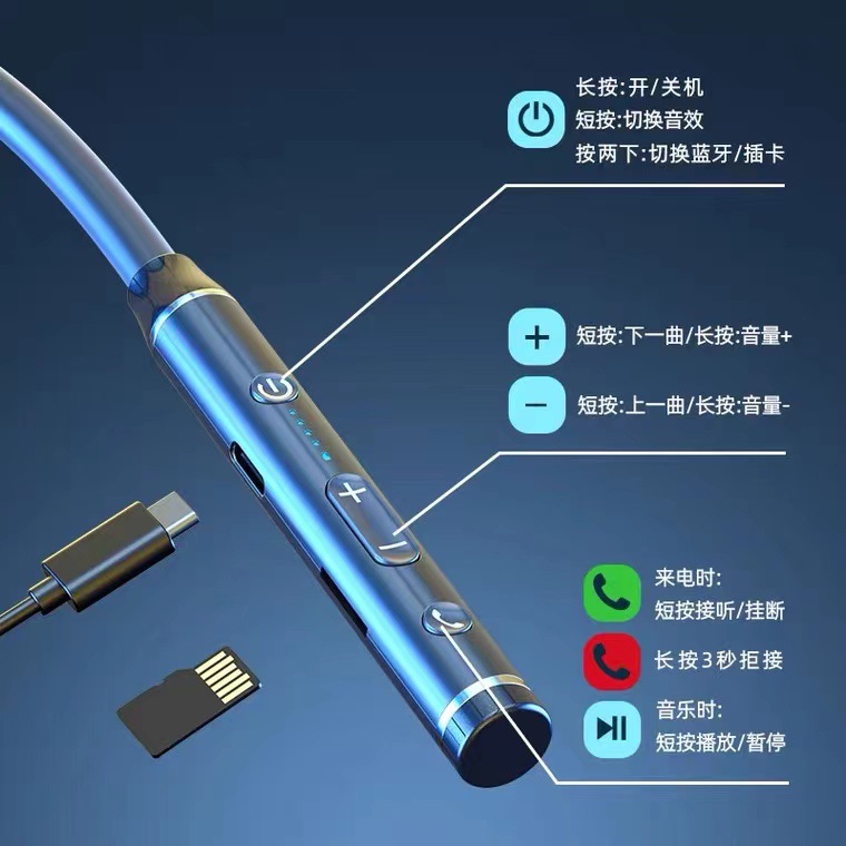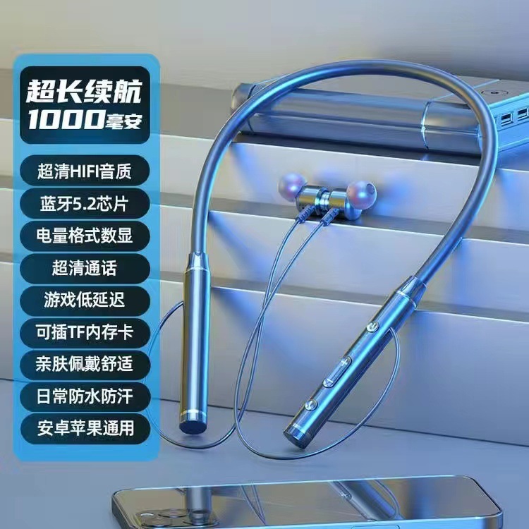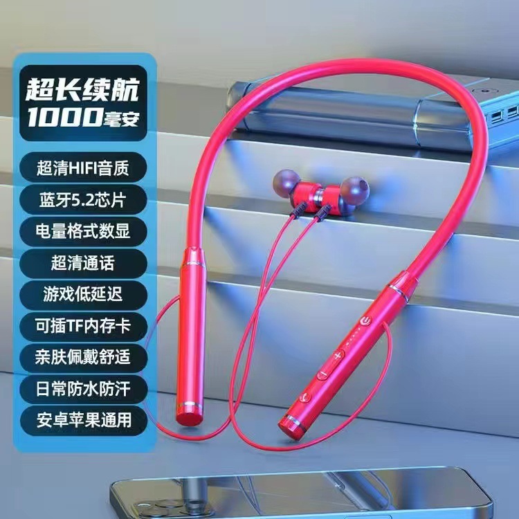 蓝牙耳机无线颈挂脖式入耳式可插卡运动跑步降噪超长续航手机通用
