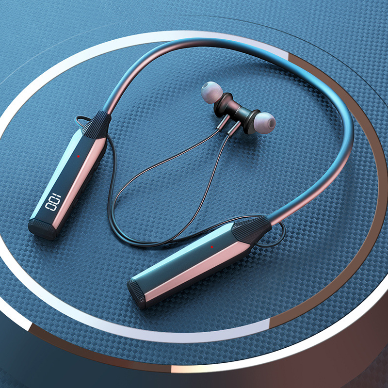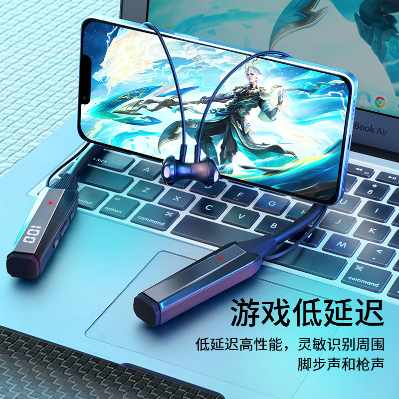 新款蓝牙耳机颈挂脖式无线可插卡数字显屏幕运动跑步听歌超长续航