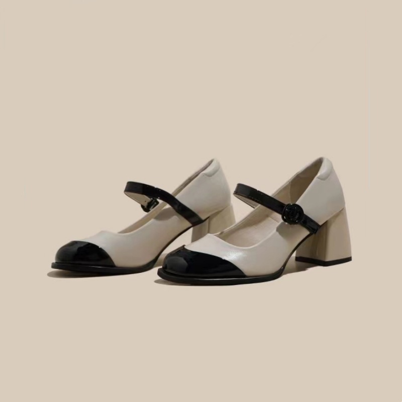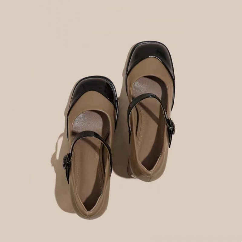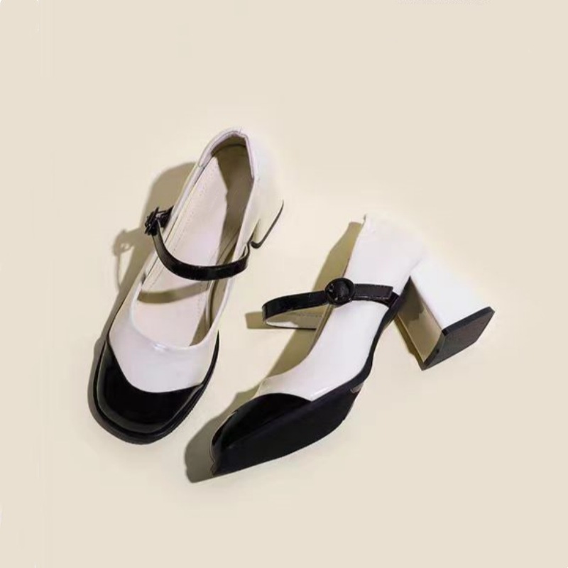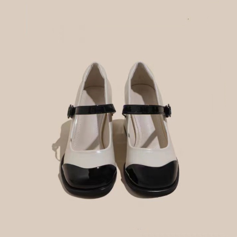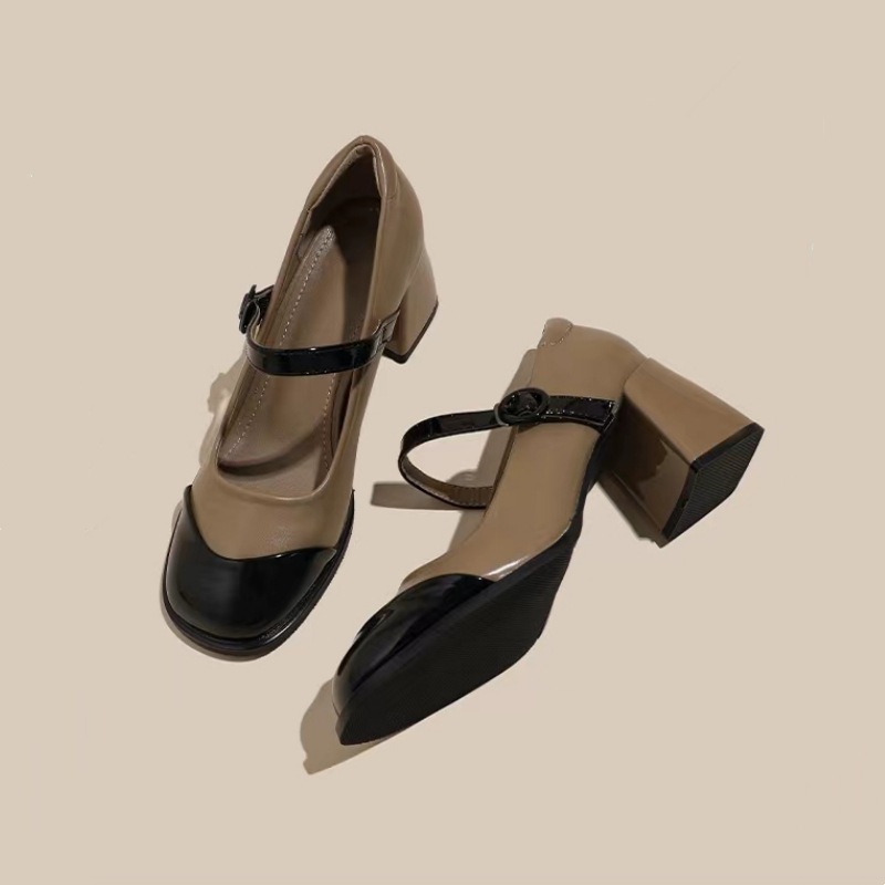 玛丽珍鞋女年春季新款英伦风小皮鞋百搭一字扣圆头粗跟高跟鞋