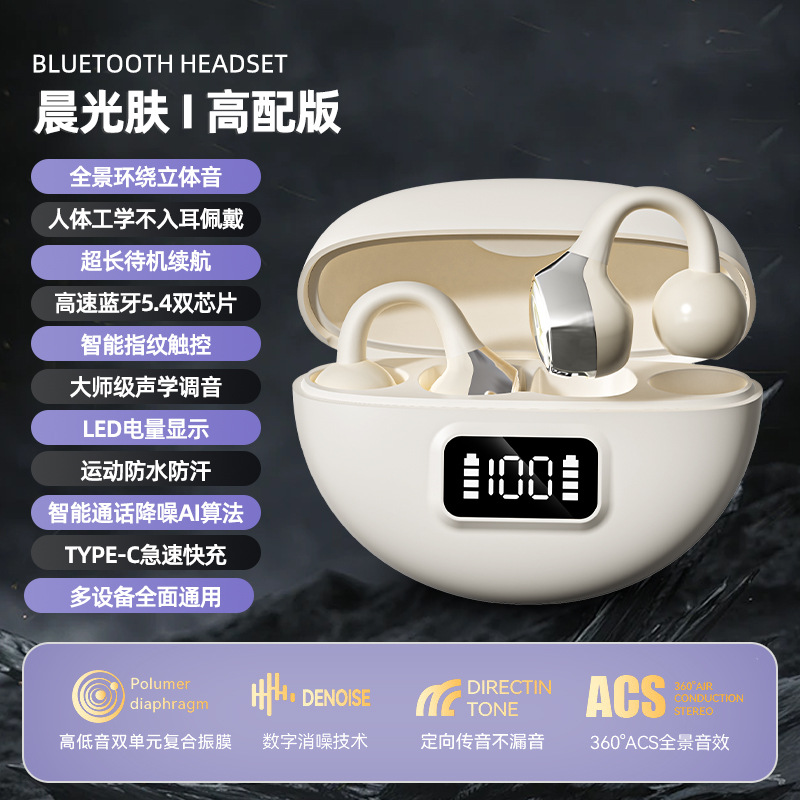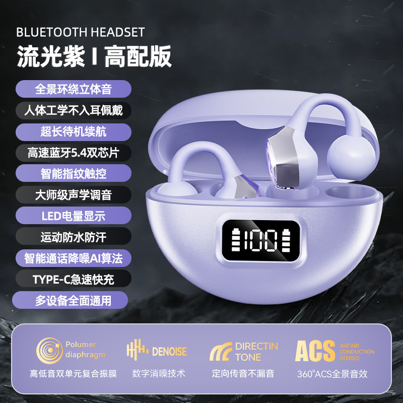 S19跨境私模爆款新款耳夹式蓝牙耳机无线双耳不入耳数显运动跑步