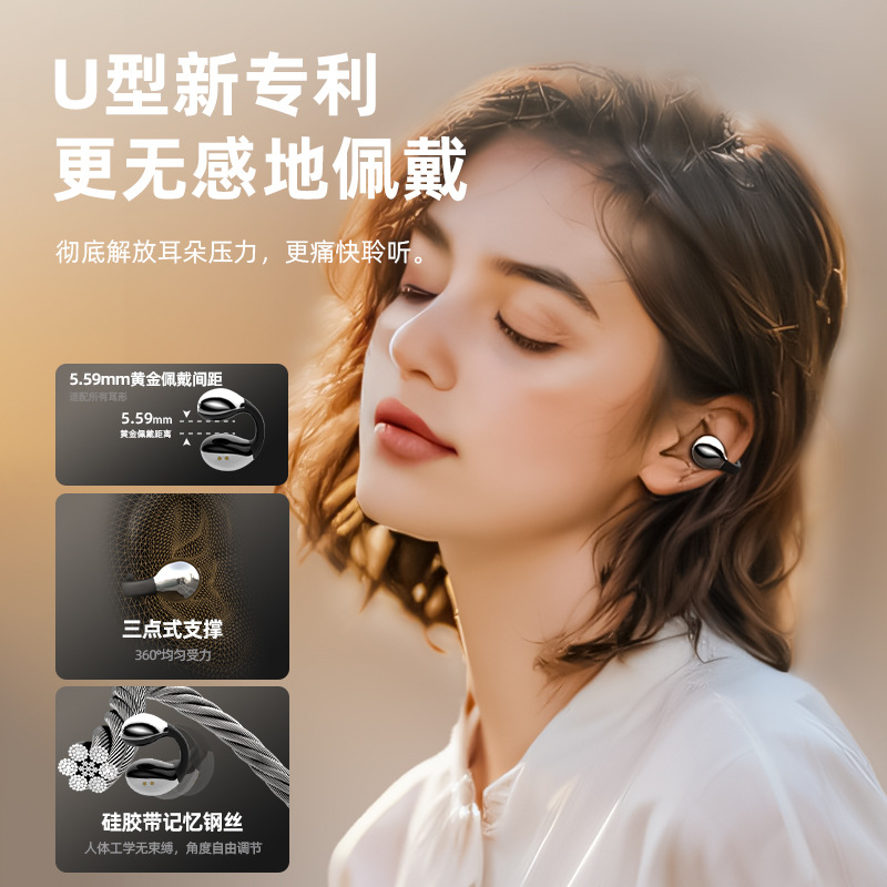 跨境私模新款蓝牙耳机耳夹式不入耳双耳适用苹果华为
