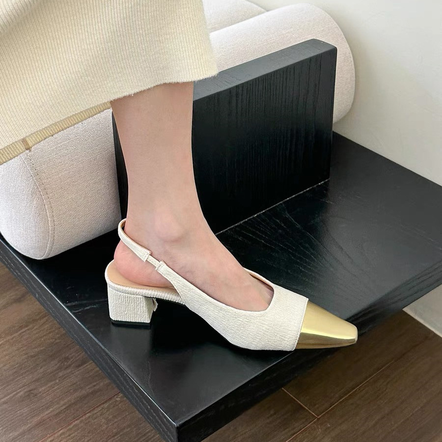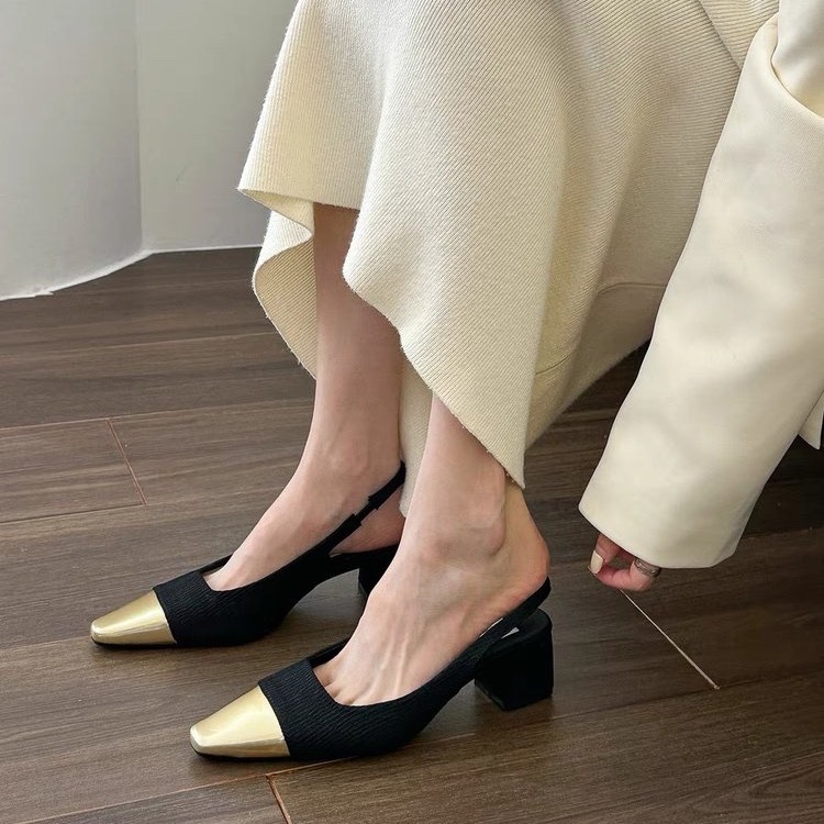 配裙子的凉鞋女夏季年新款法式小香风粗跟单鞋气质名媛高跟鞋