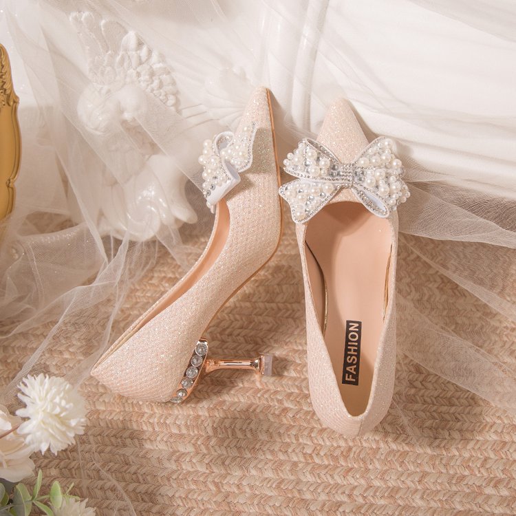 法式婚鞋水晶鞋新款仙女风高跟鞋女细跟主婚纱新娘气质名媛