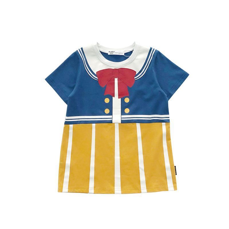 夏季新款甜美公主印花连衣裙时尚假两件爆款短袖女童T恤裙子