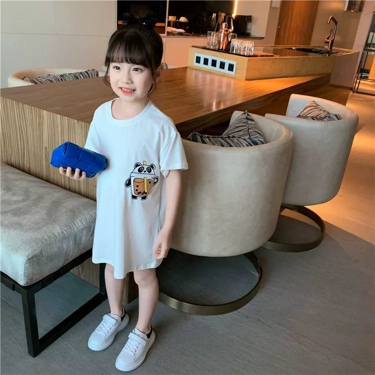 女童长T裙夏装儿童韩版洋气宽松连衣裙女孩气球小熊裙子ins潮