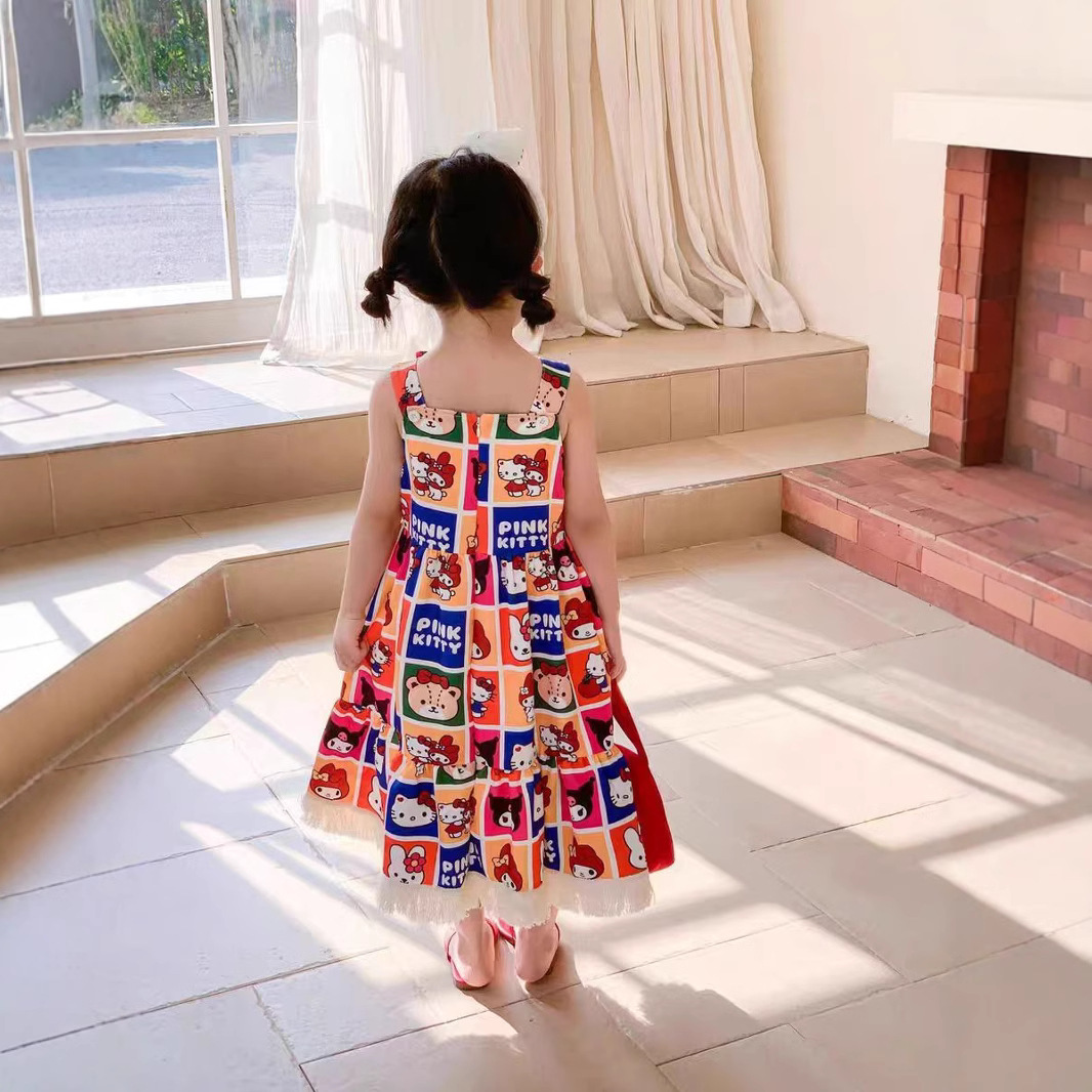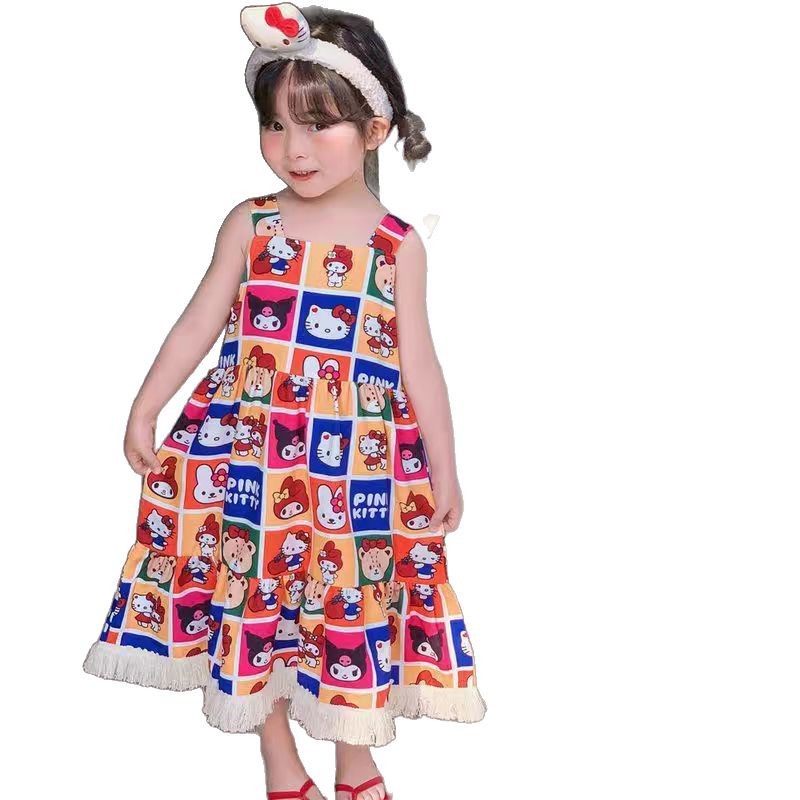 女童KT 库洛米卡通满印连衣裙 2025夏季新款吊带甜美儿童洋气长裙