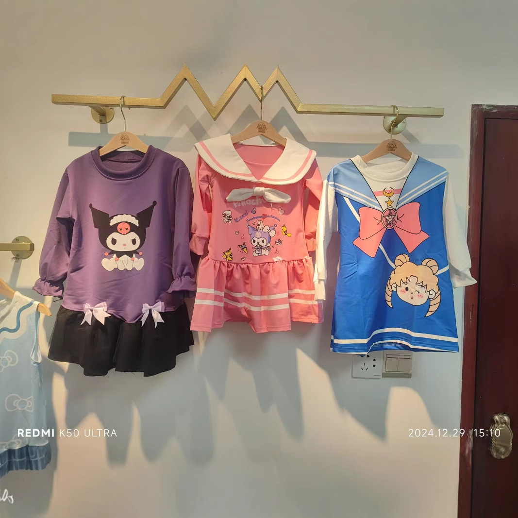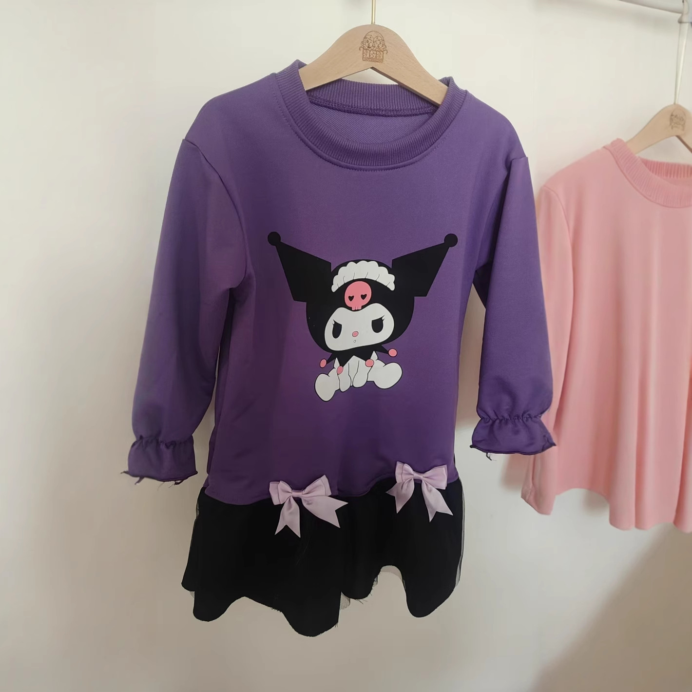 女童库洛米卫衣蓬蓬连衣裙秋冬蝴蝶结网纱可爱卡通女宝长袖裙