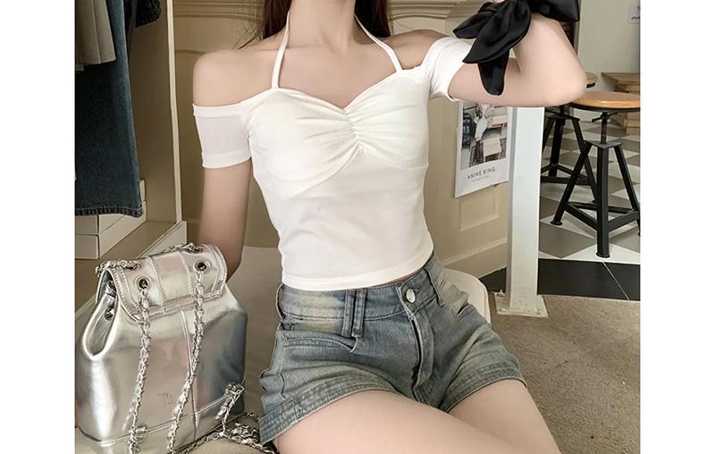纯欲性感辣妹一字肩锁骨无袖吊带上衣新款修身短款别致上衣