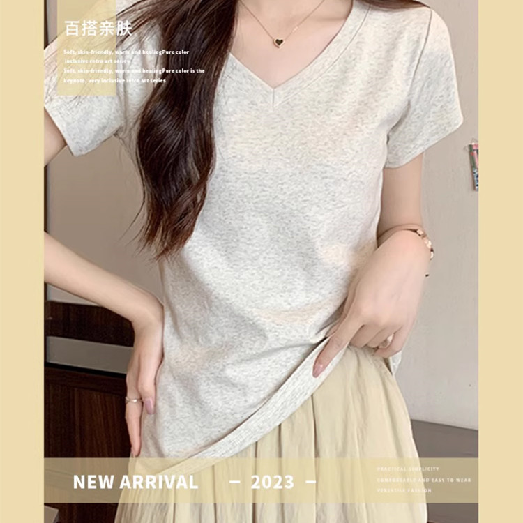 仿棉螺纹v领正肩T恤女短袖2025新款爆款夏季基础修身纯欲甜辣上衣