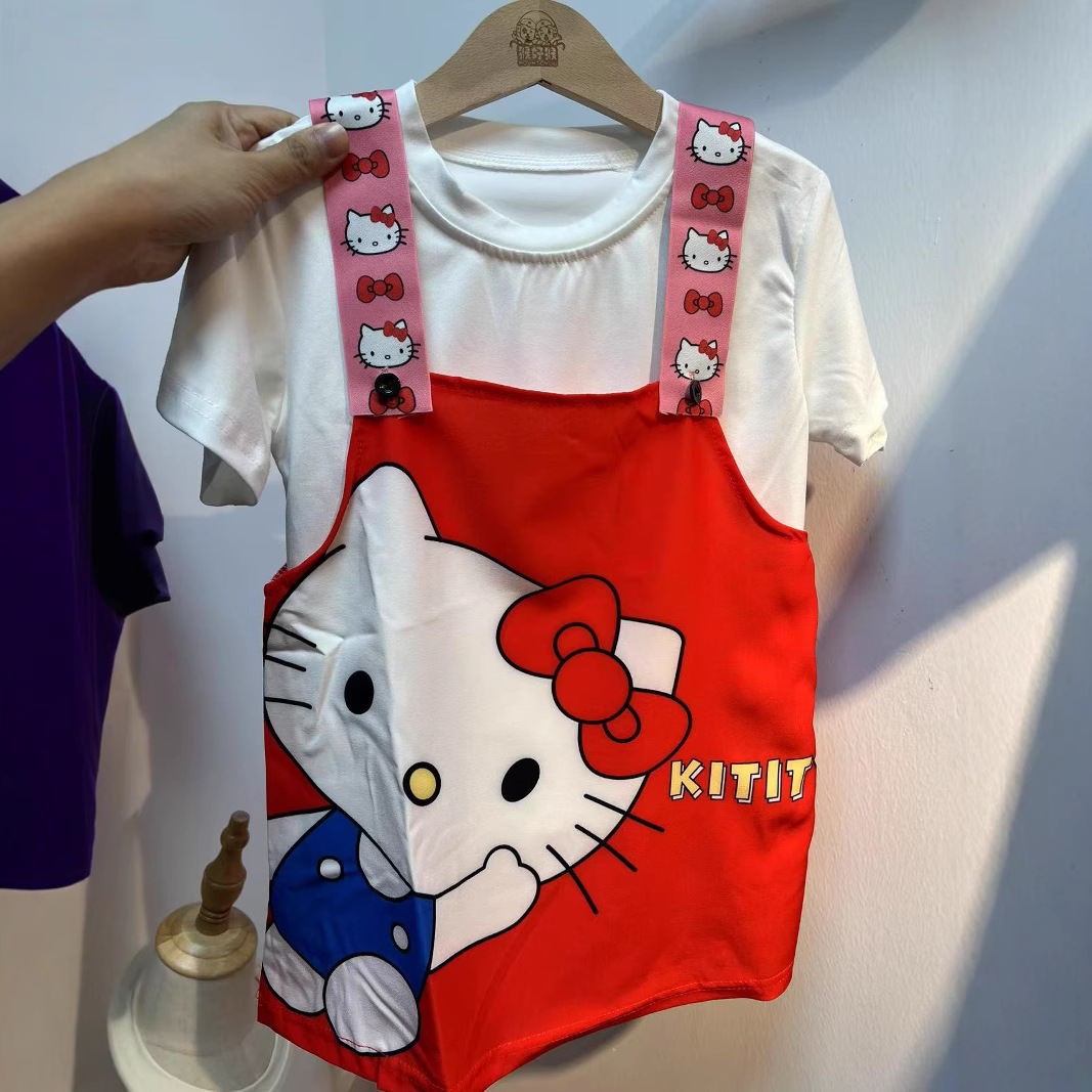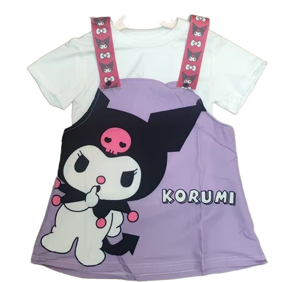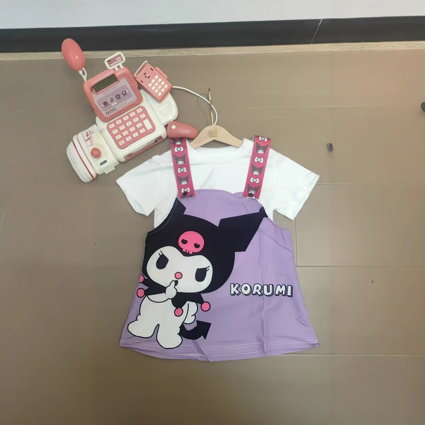 女童夏季短袖T恤新款儿童可爱卡通库洛米紫色两件洋气连衣裙森系