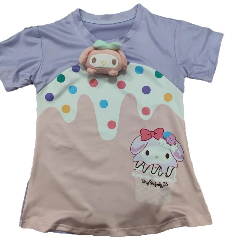 夏季新款夏日小清新女童连衣裙彩色波点雪糕立体美乐蒂公仔T恤裙