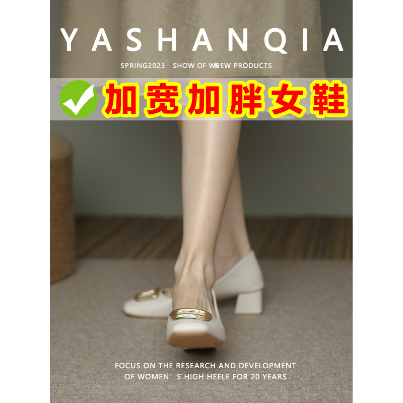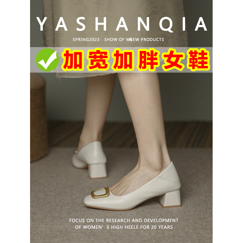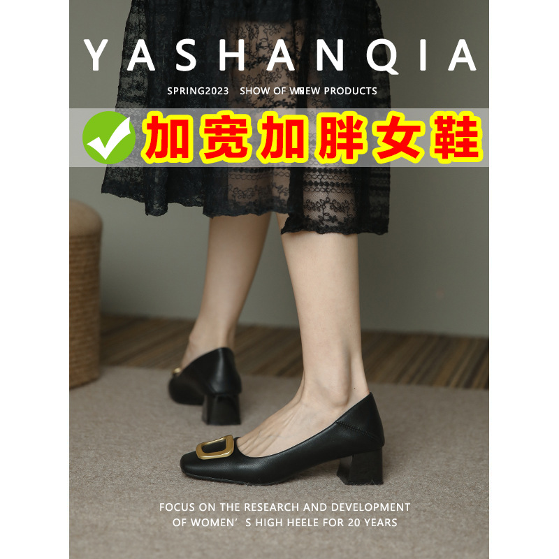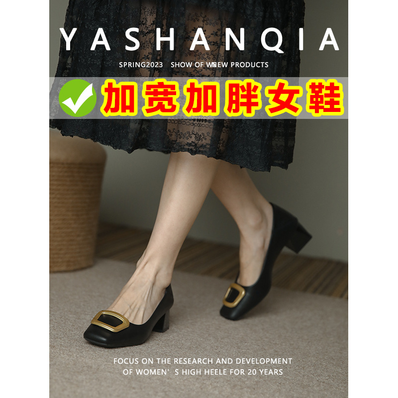 春秋新款大码女鞋41一43 加肥加宽名媛高跟鞋 小香风粗跟单鞋