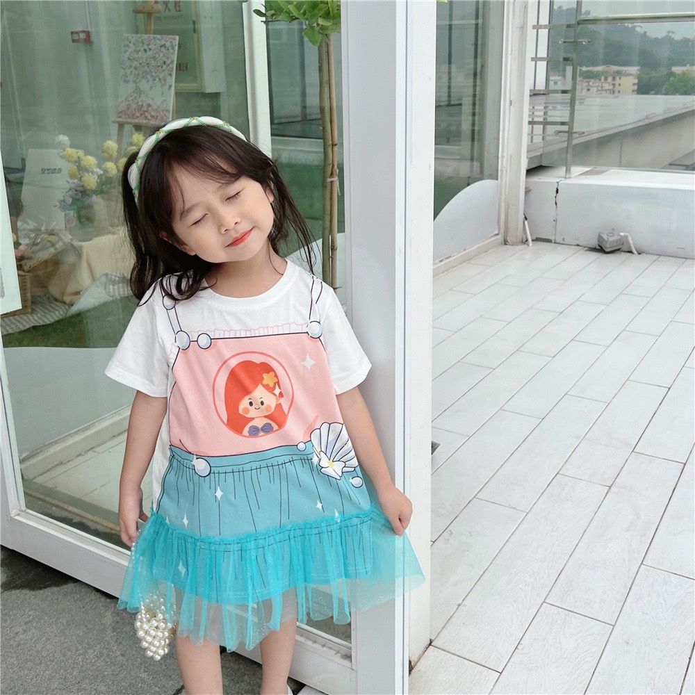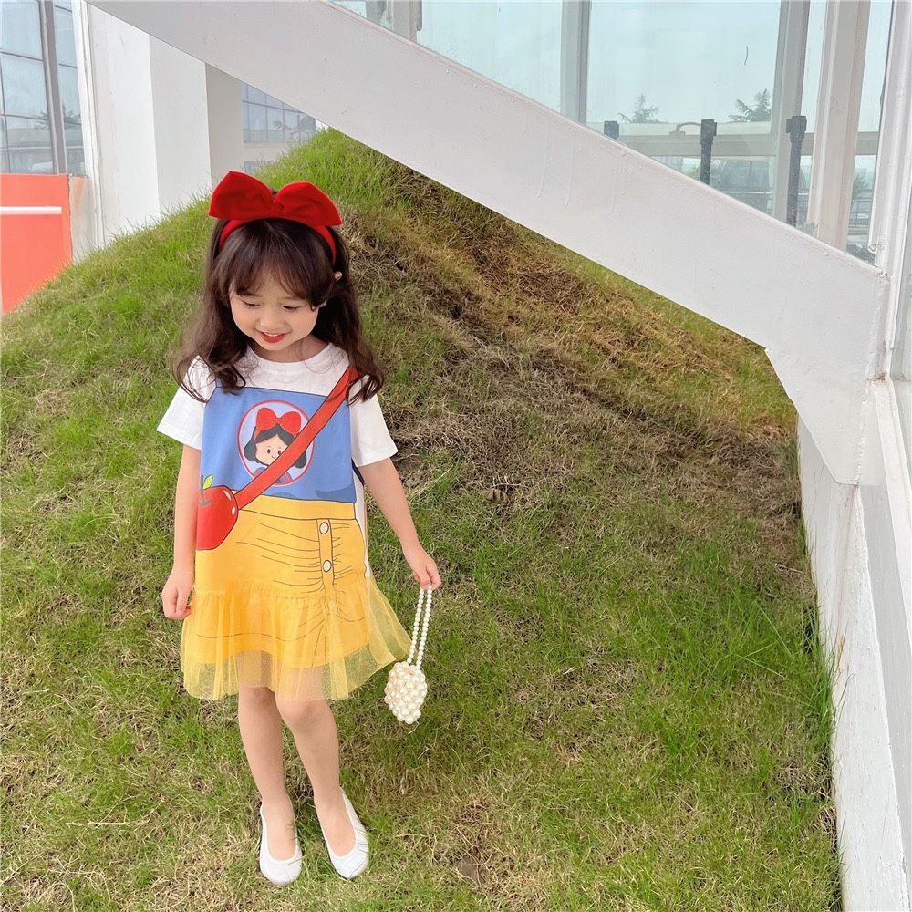 女童卡通假两件网纱连衣裙短袖T恤裙夏季新款洋气宝宝白雪公主裙
