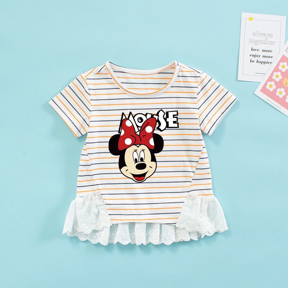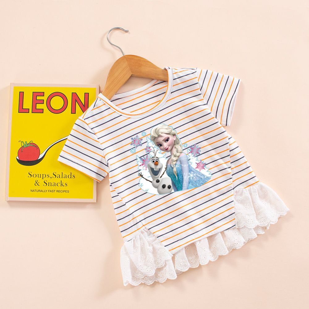 森系条纹t恤裙宝宝彩虹马童装独角兽衣服女童时髦短袖T恤儿童洋气