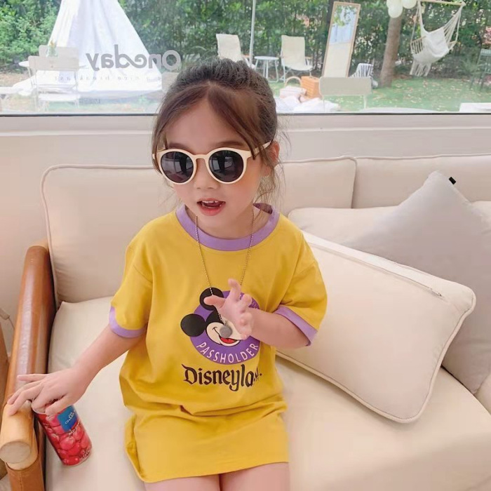 女童夏装短袖t恤裙假两件洋气中小童宝宝时尚中长款裙T潮