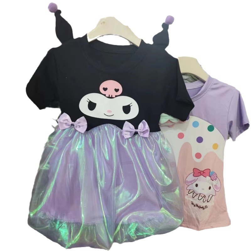 儿童萌趣卡通拼接娃娃裙ins夏款女童宝宝库洛米立体耳朵连衣裙潮