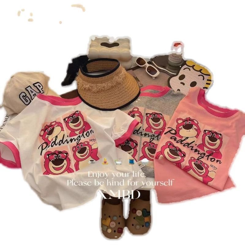 草莓熊卡通新款印花男女宝宝儿童短袖t恤夏季宽松百搭圆领上衣潮