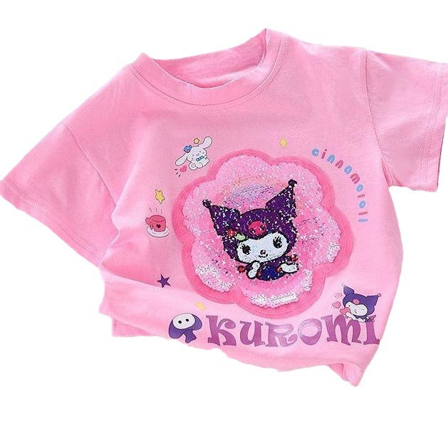 女童t恤短袖牛奶磨毛夏新款爆款洋气变色库洛米亮片女孩可爱