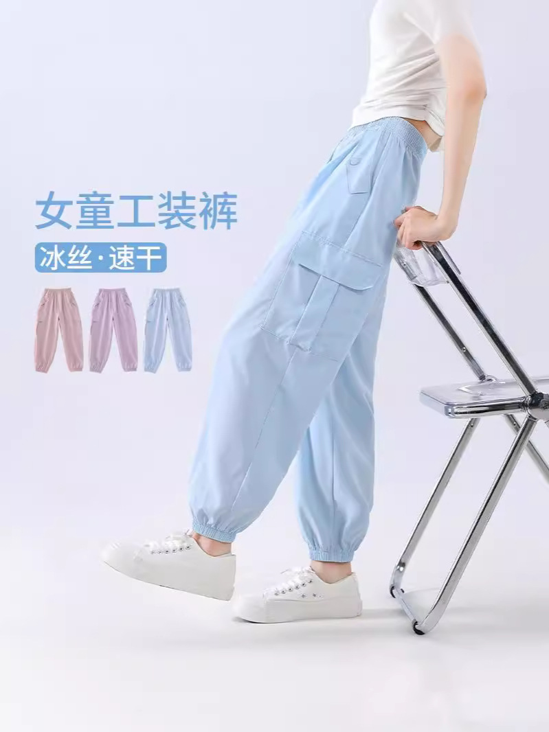 女童炸街工装裤子夏季新款女大童冰丝薄款防蚊裤儿童休闲裤潮