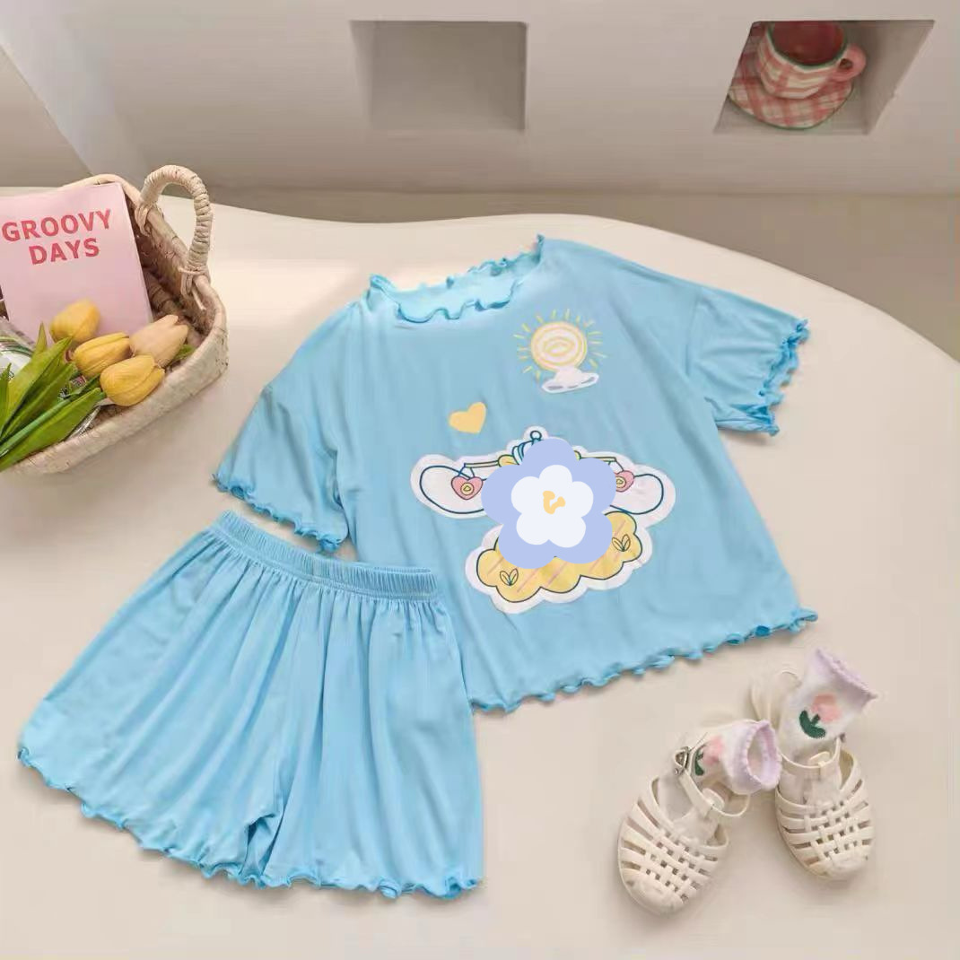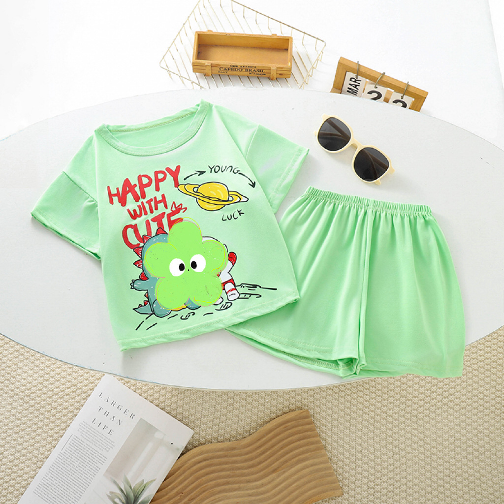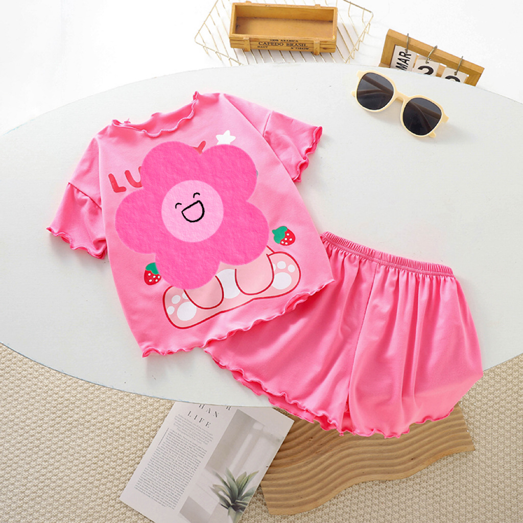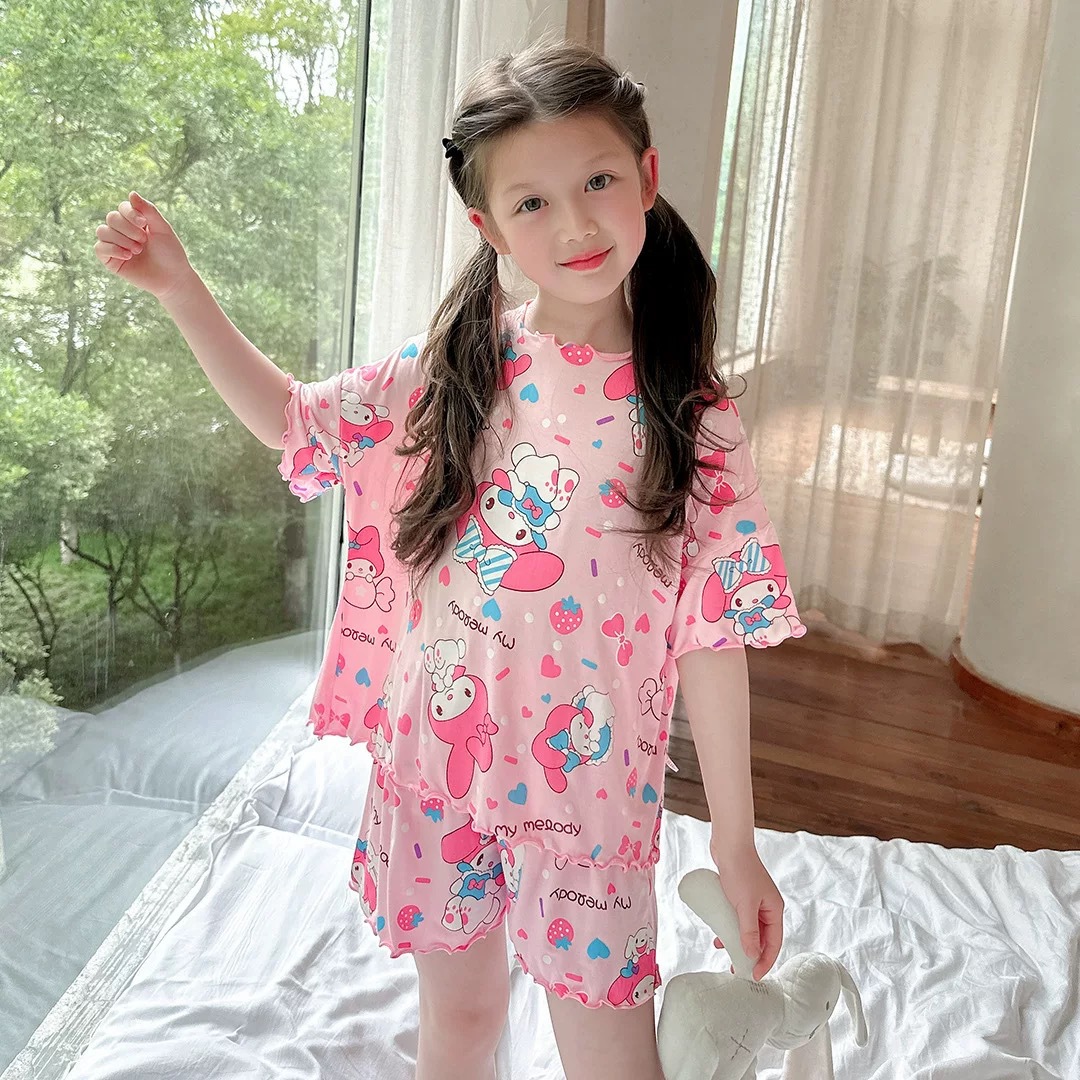 睡衣夏季新款短袖短裤女童可爱ins卡通小女孩宝宝家居服套装