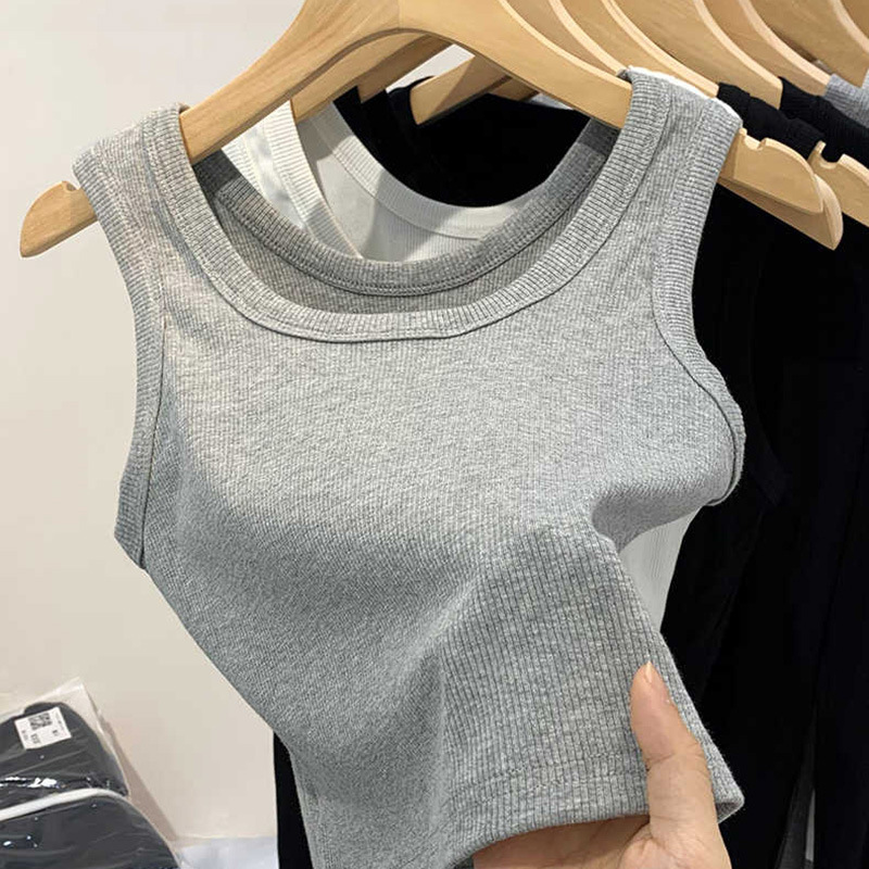 外穿螺纹吊带运动背心女内搭夏季2025新款打底防走光无袖短款上衣
