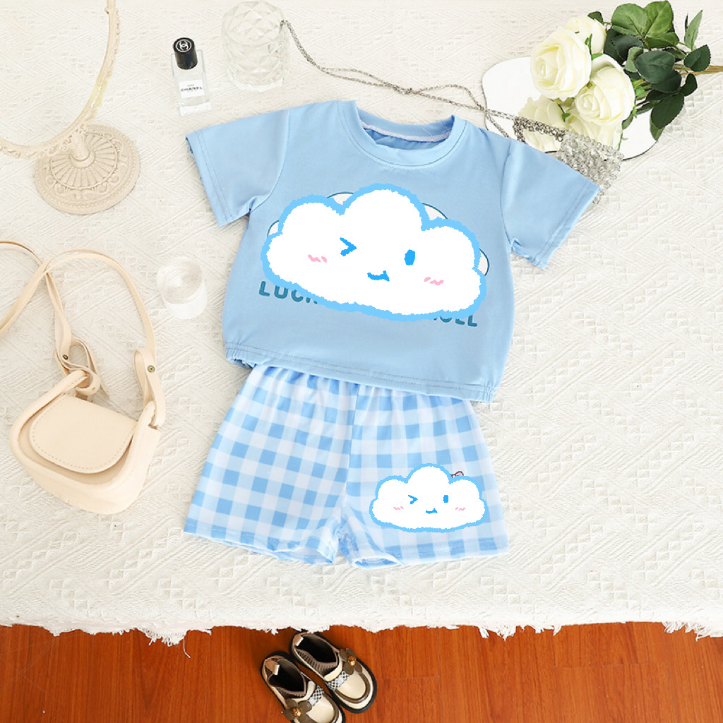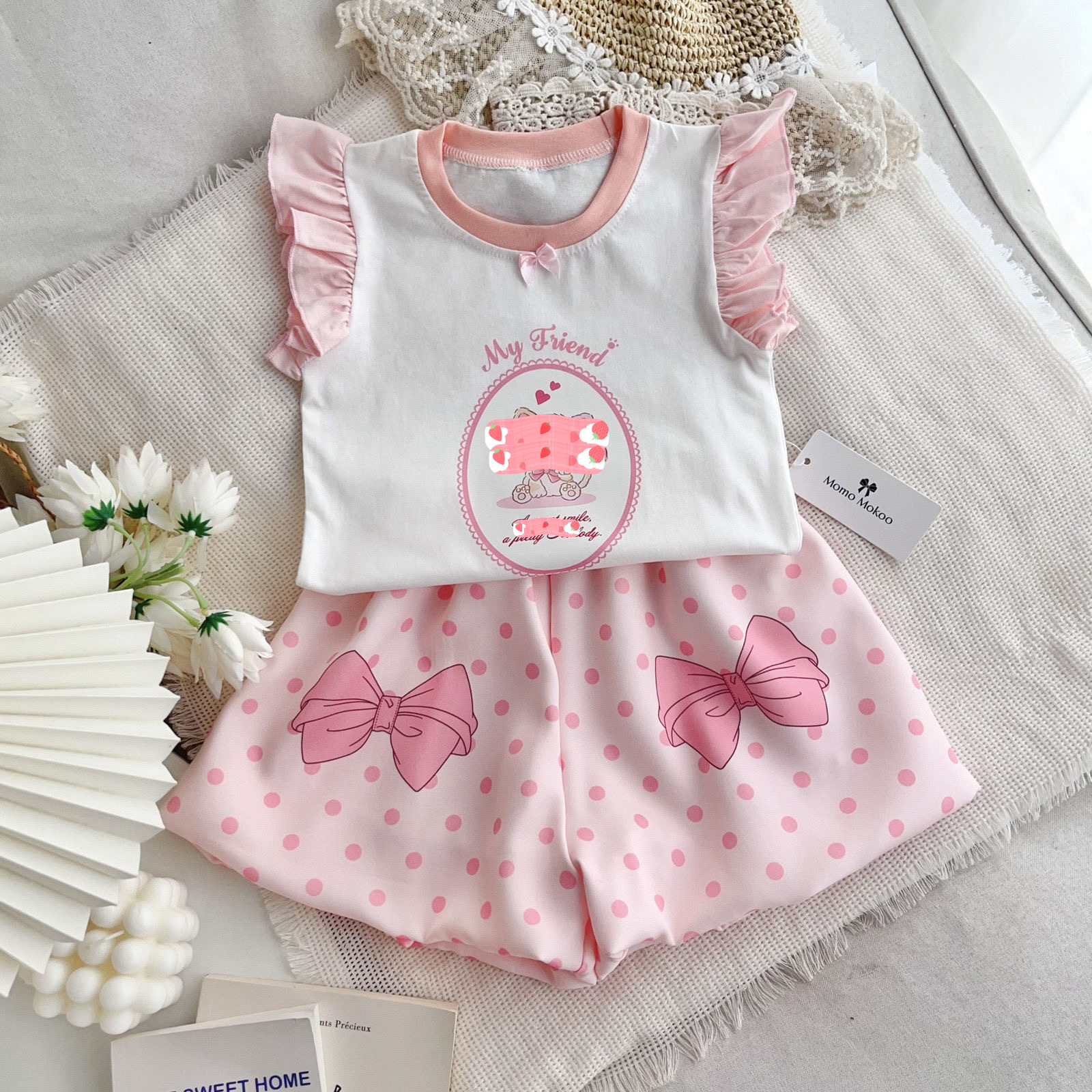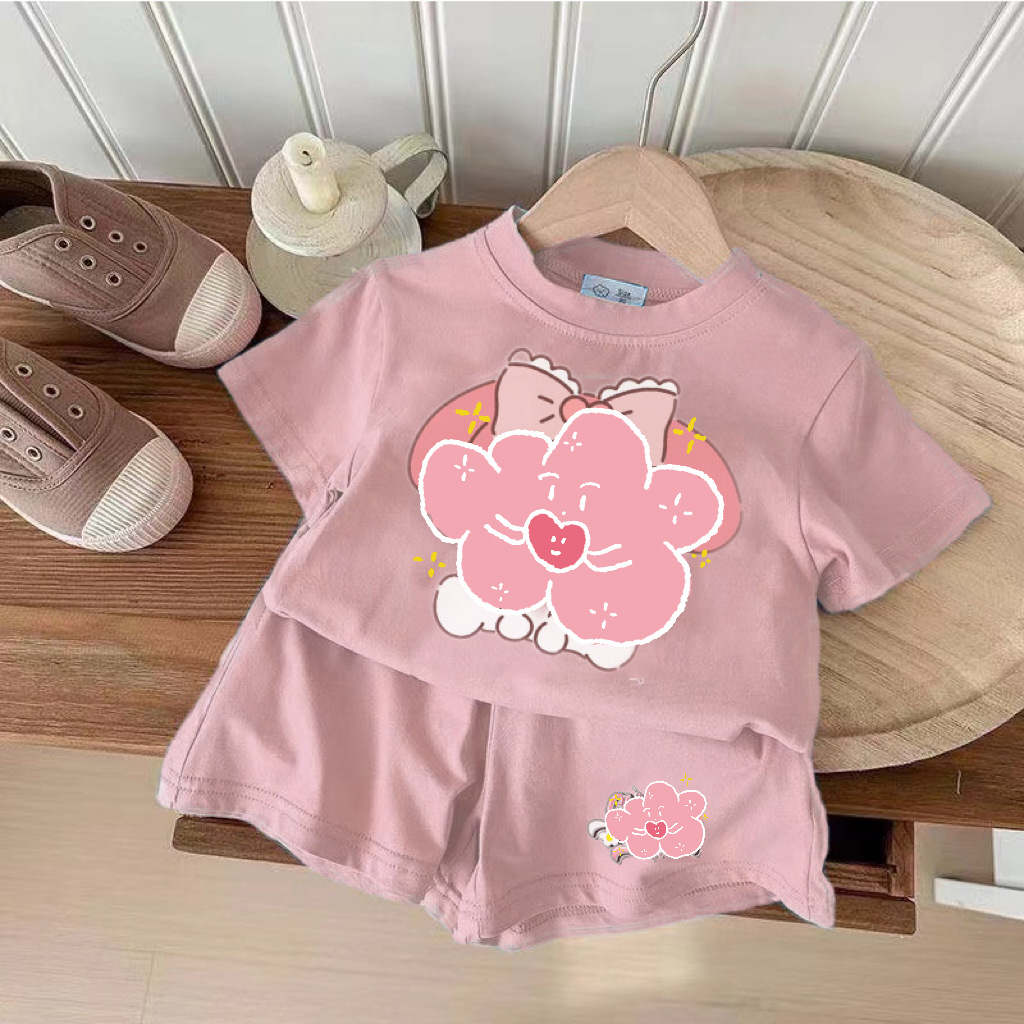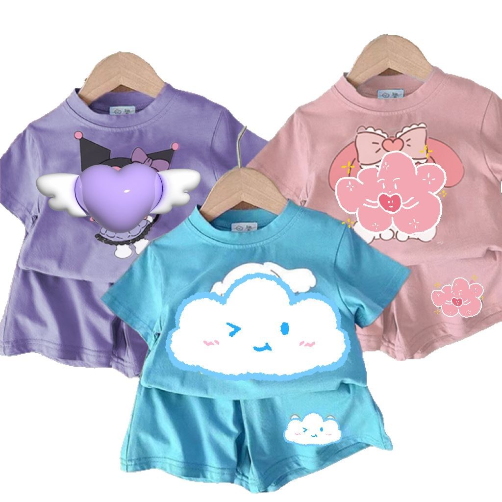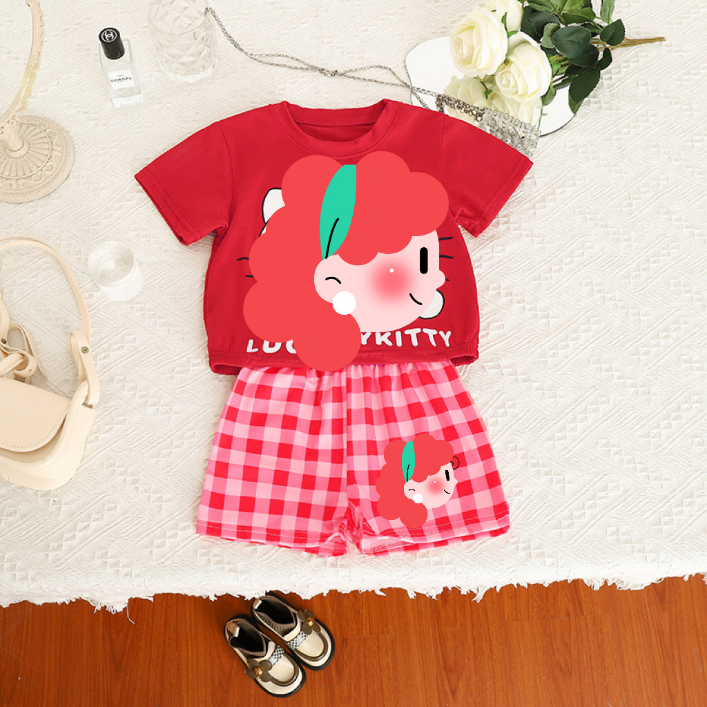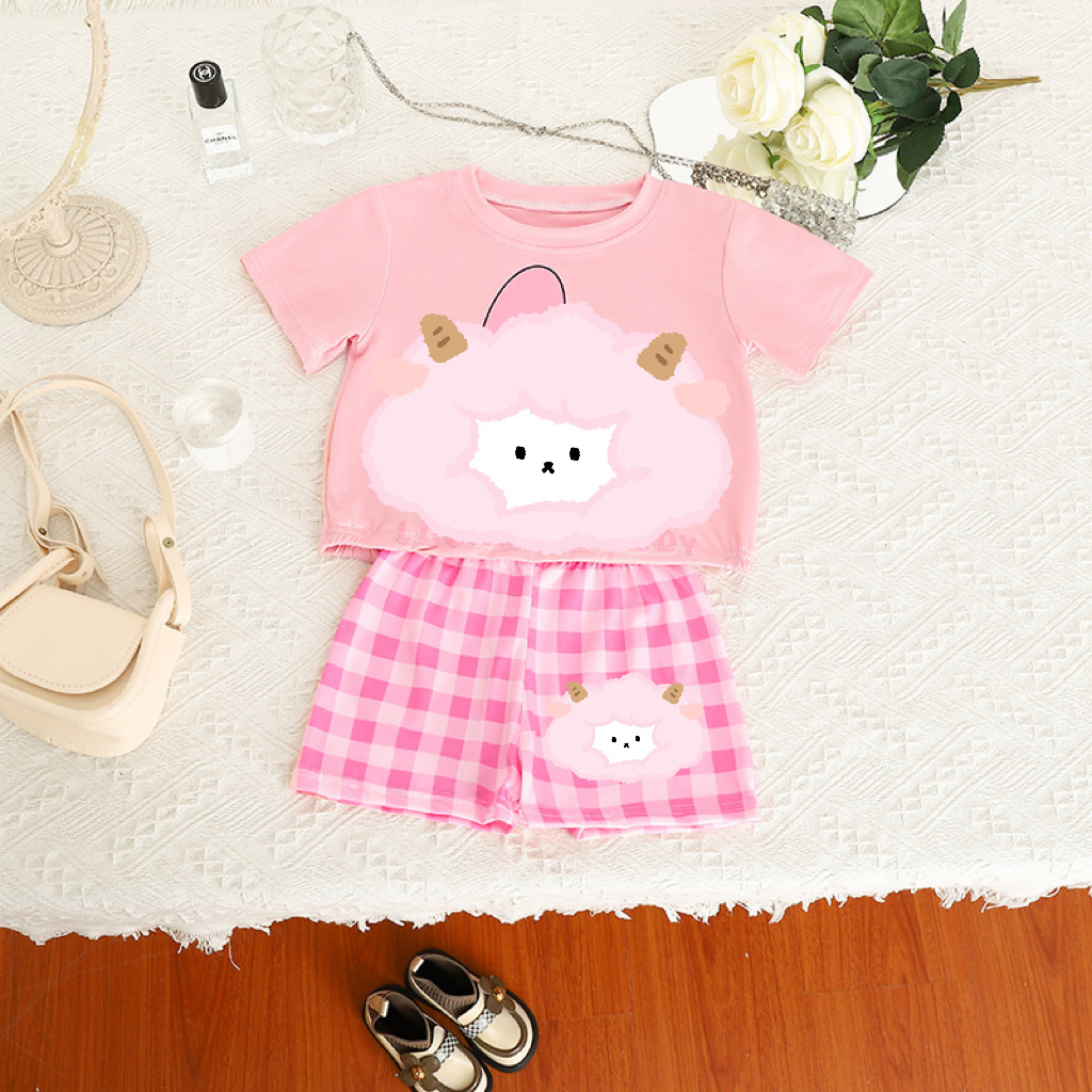新款中小女童宝宝多巴胺卡通时尚简约T恤ins短裤两件套装夏季