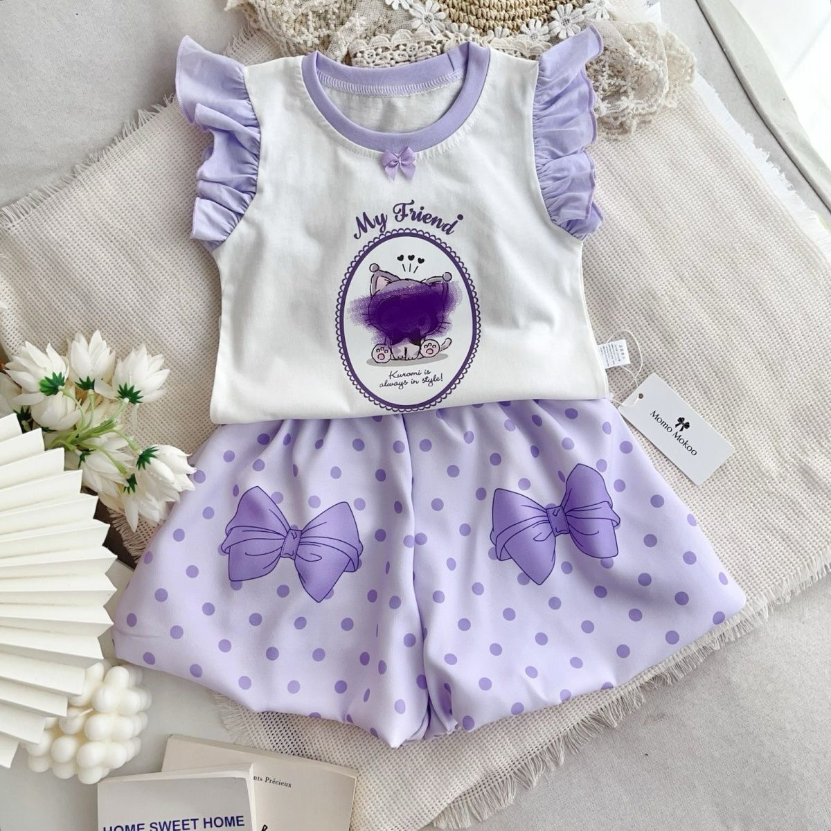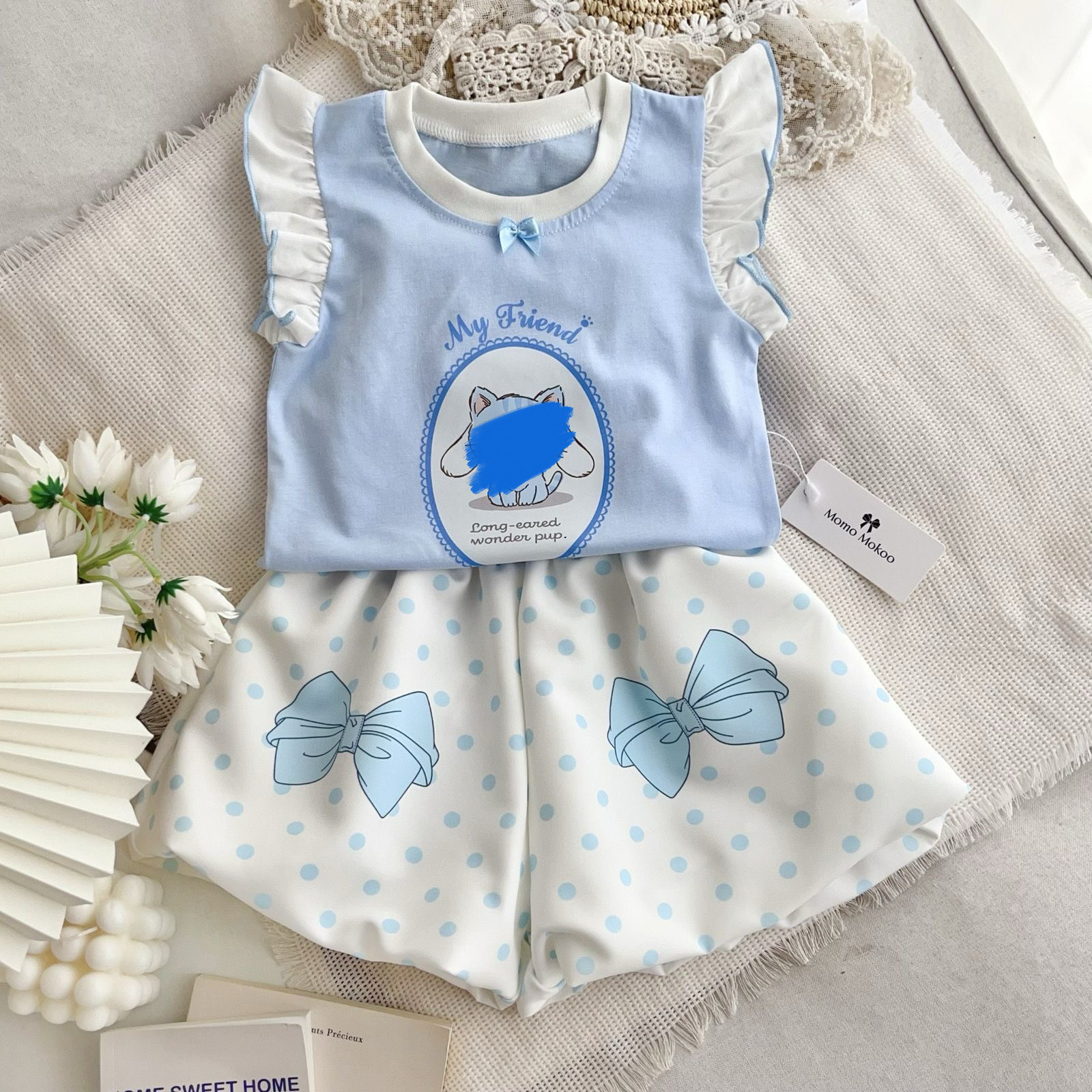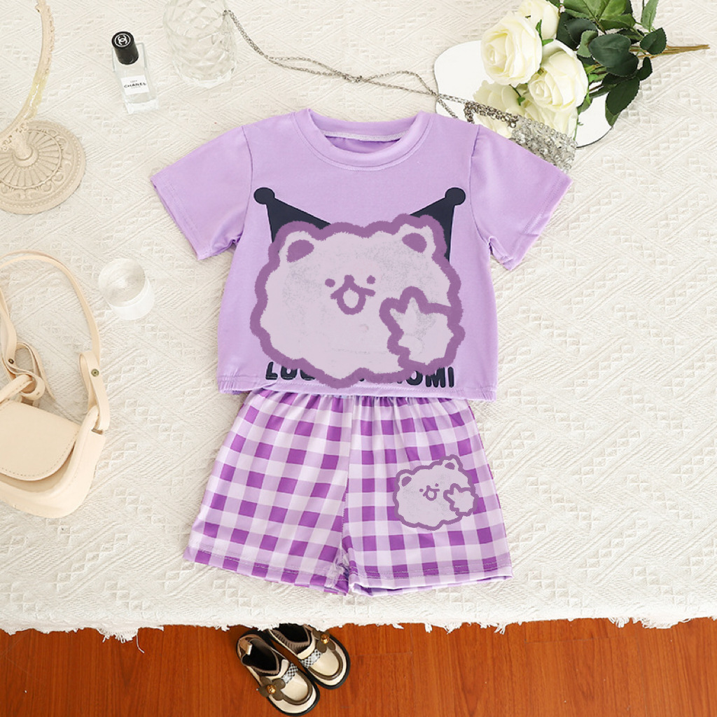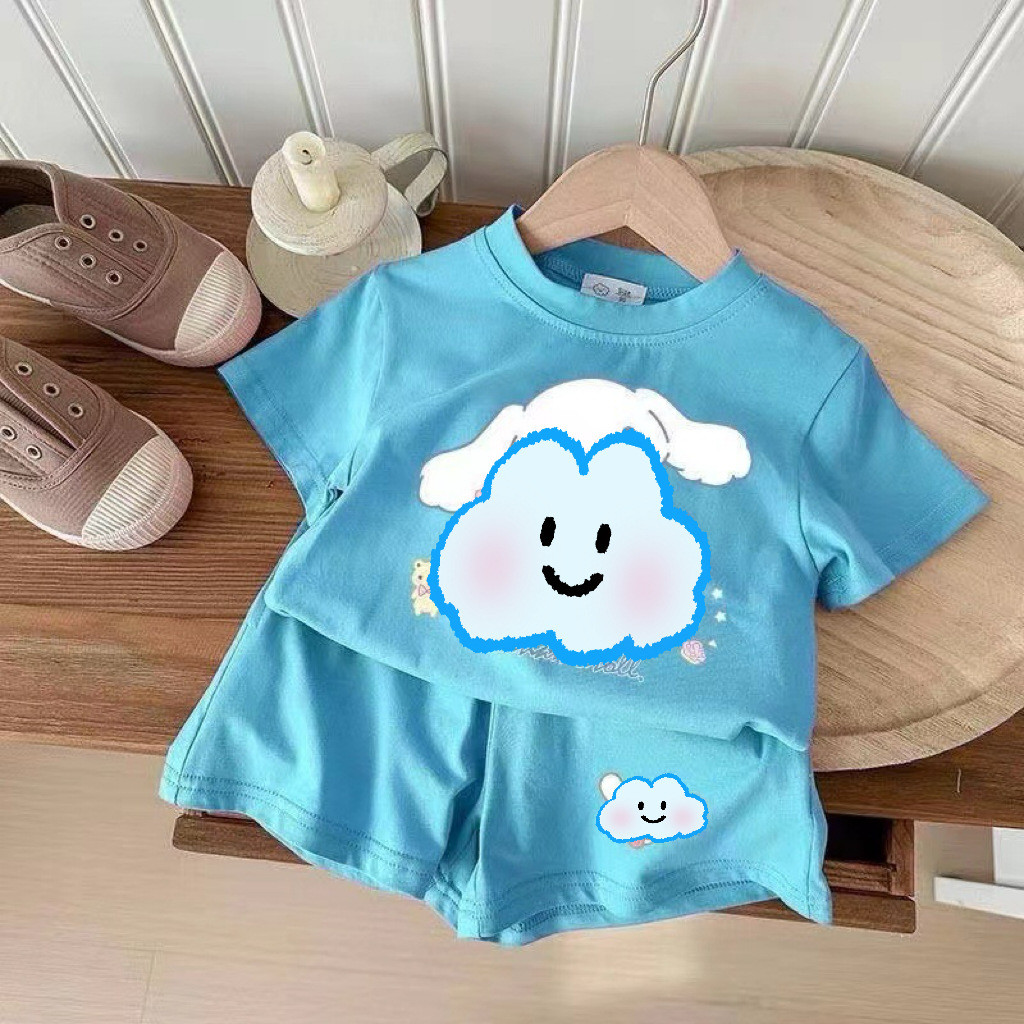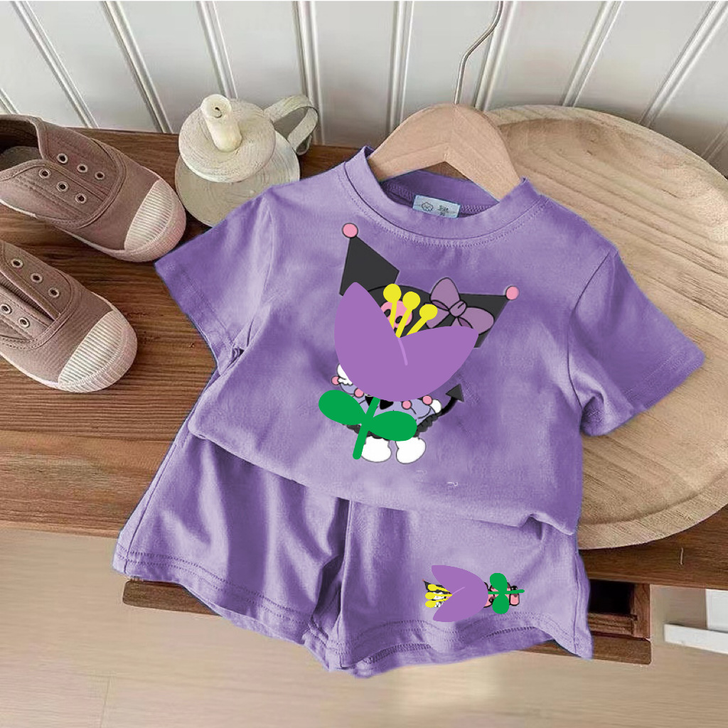 新款中小女童宝宝多巴胺卡通时尚简约T恤ins短裤两件套装夏季
