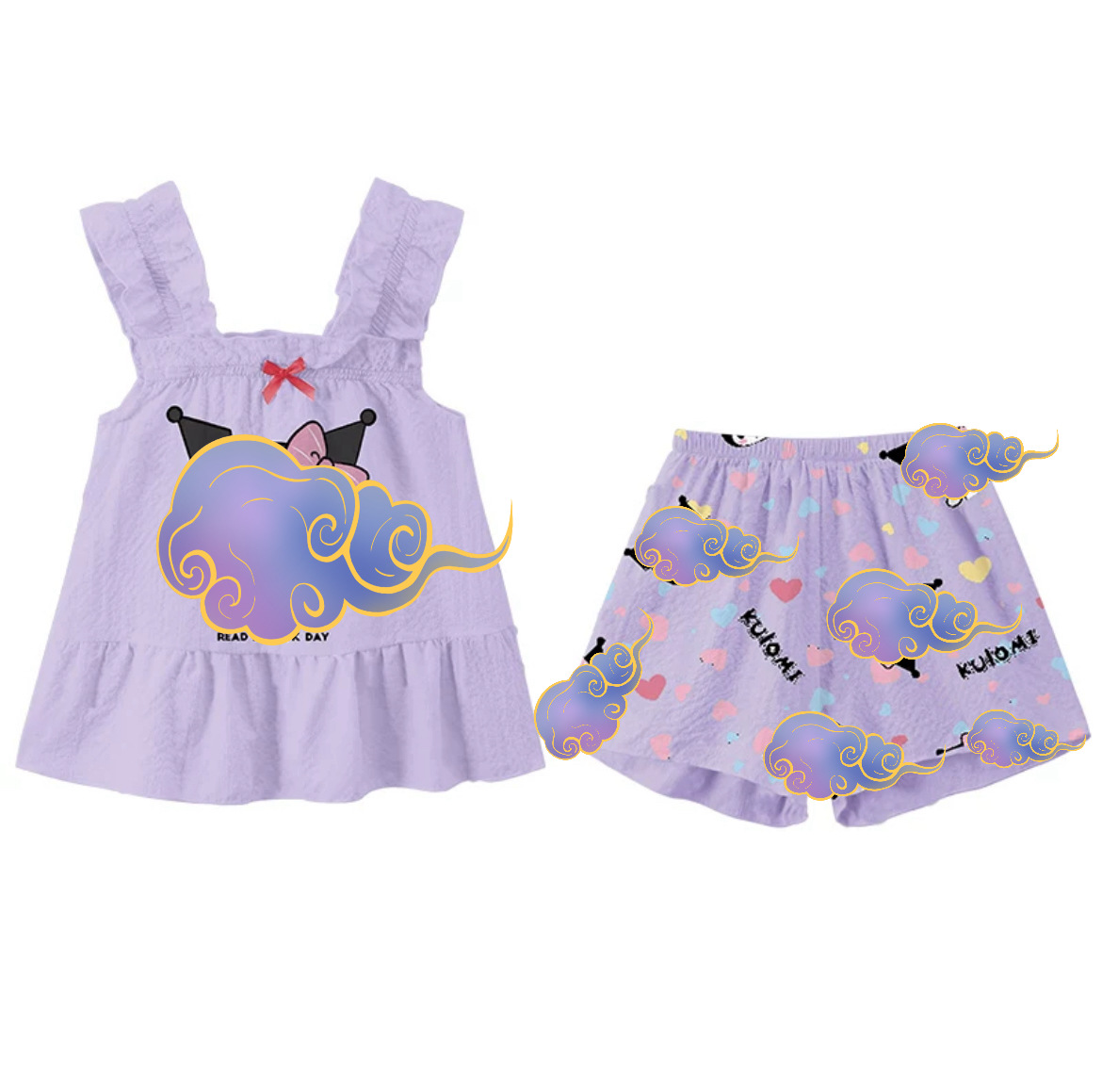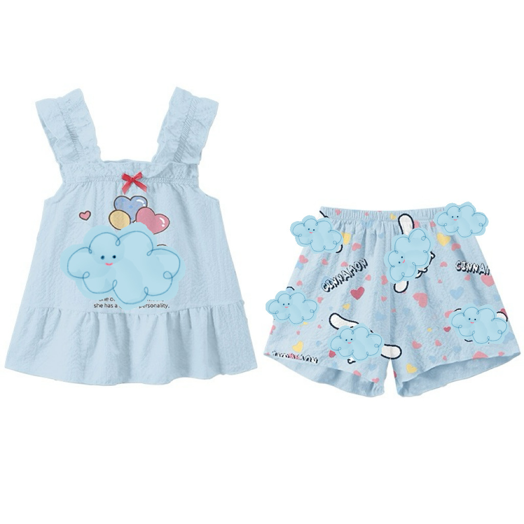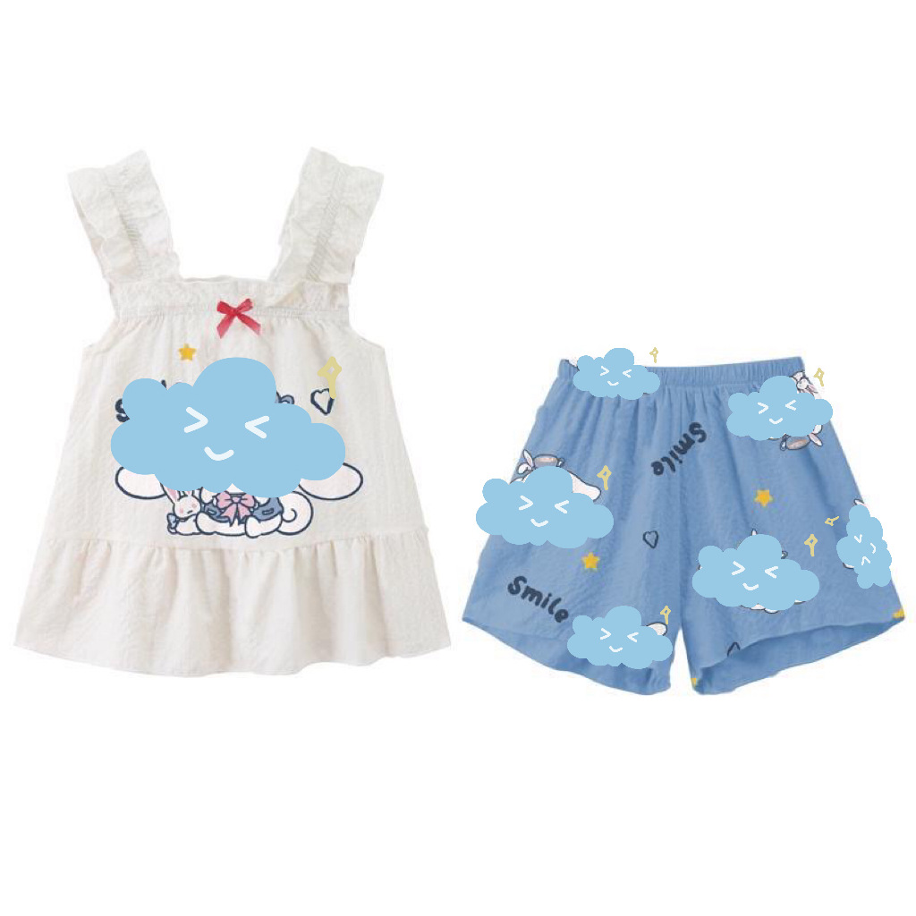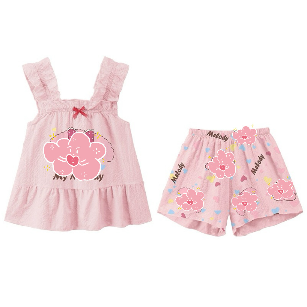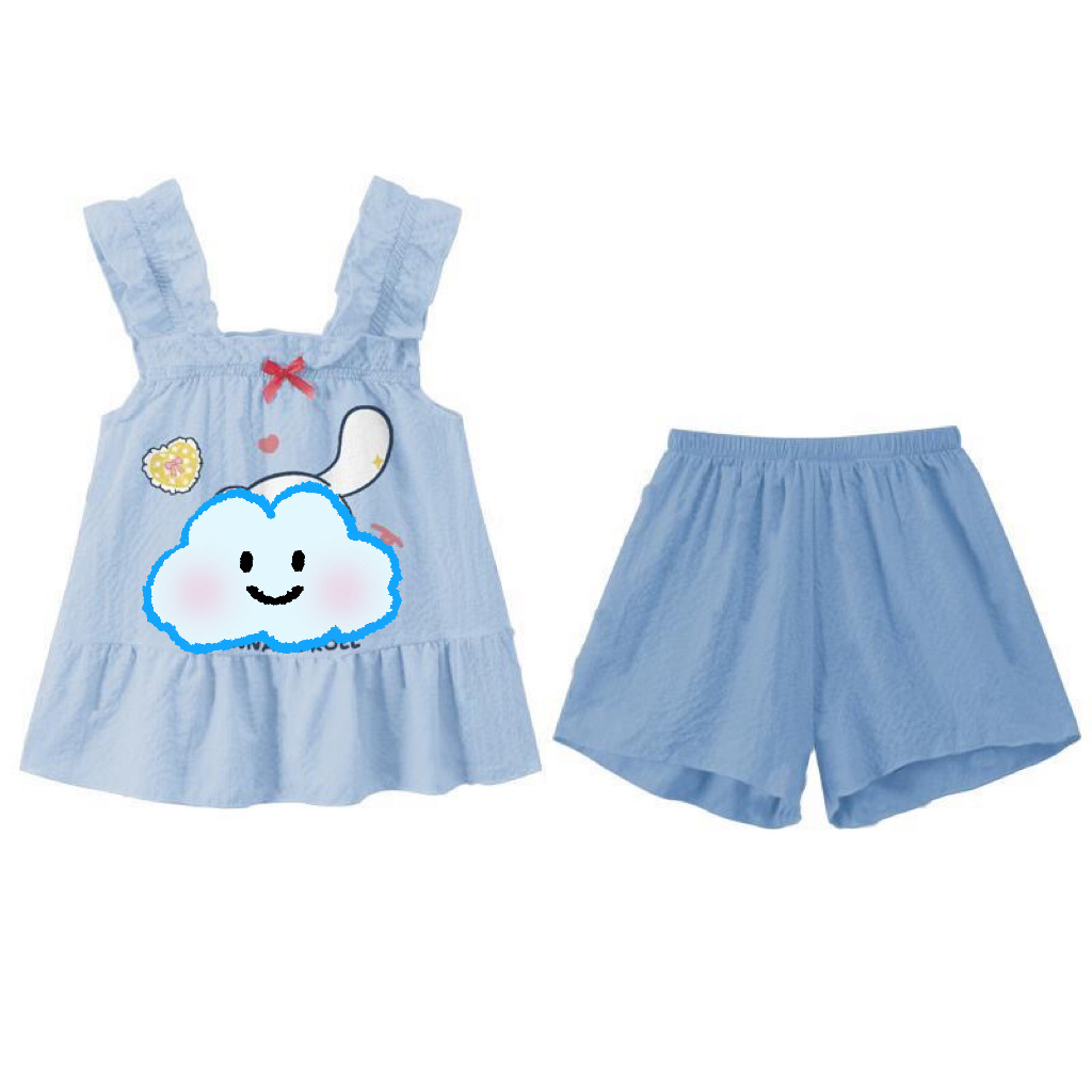 女童背心吊带蝴蝶结睡衣小女孩印花公主少儿夏季薄款无袖家居服套