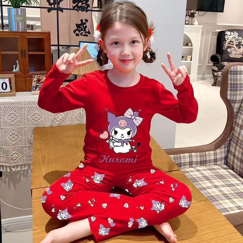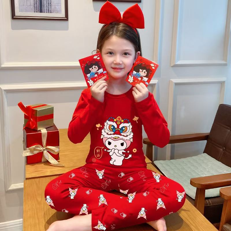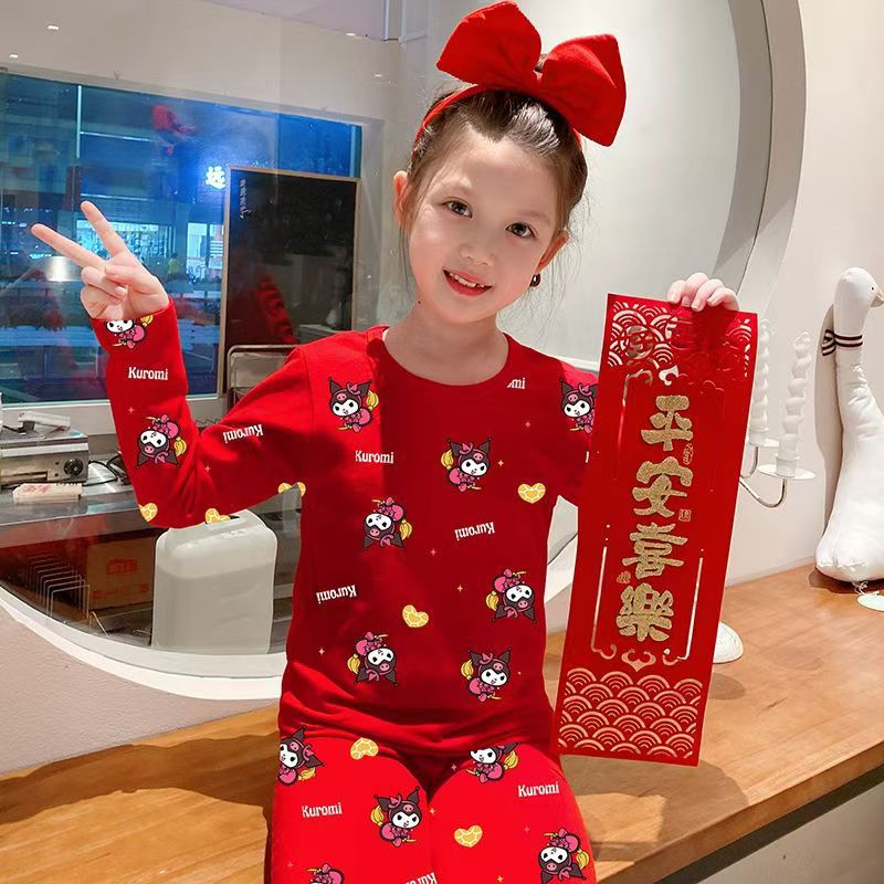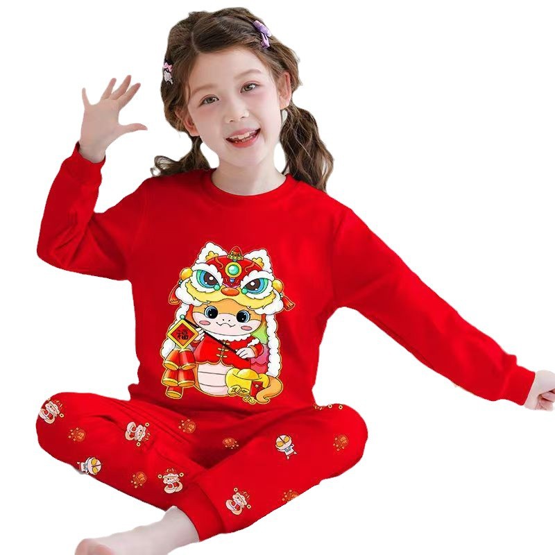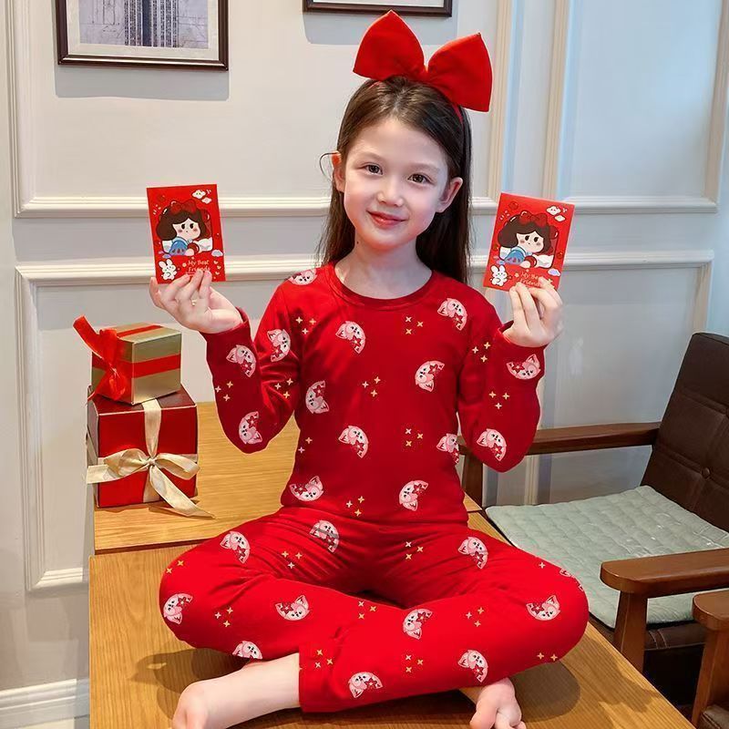 儿童睡衣女童内衣套装红色男女童秋衣裤女孩本命年打底衫套装