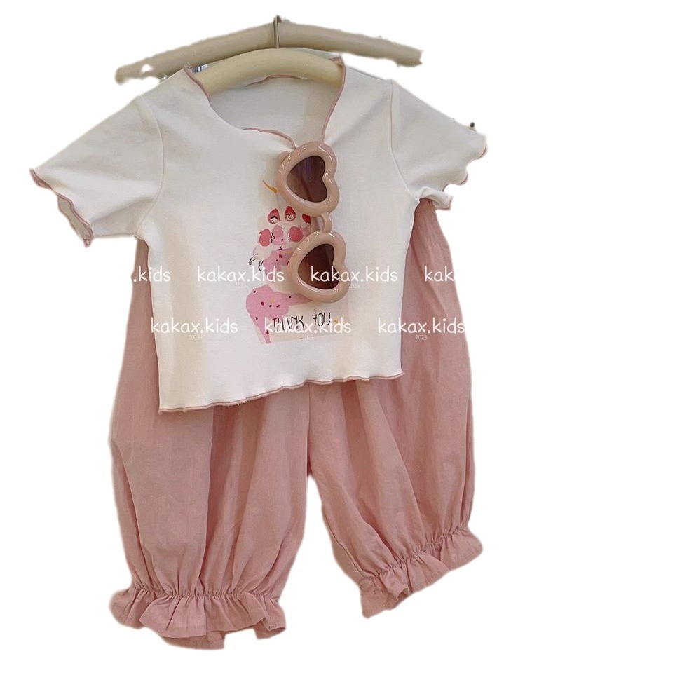 女童套装新款洋气女宝宝短袖可爱七分裤两件套幼儿园夏季可爱