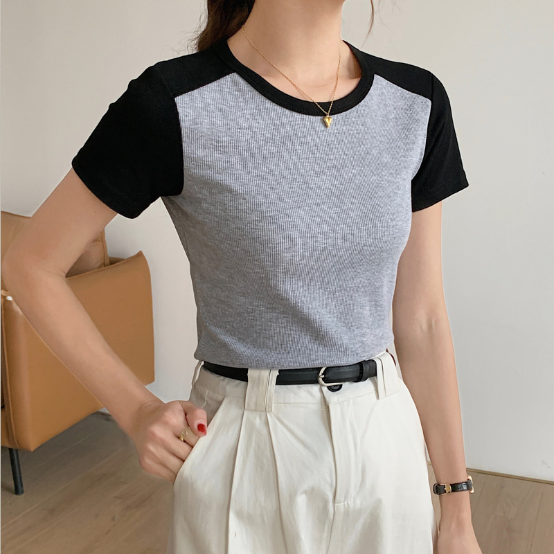 【价值高于价格】高级撞色短袖T恤女夏新款百搭复古打底上衣