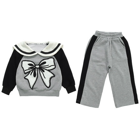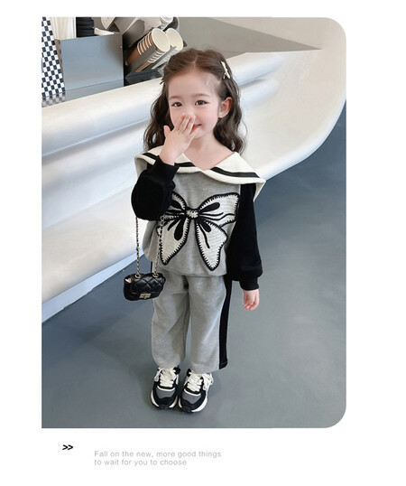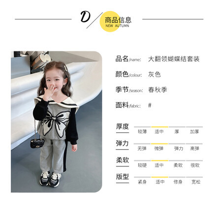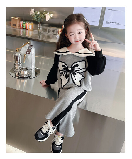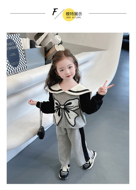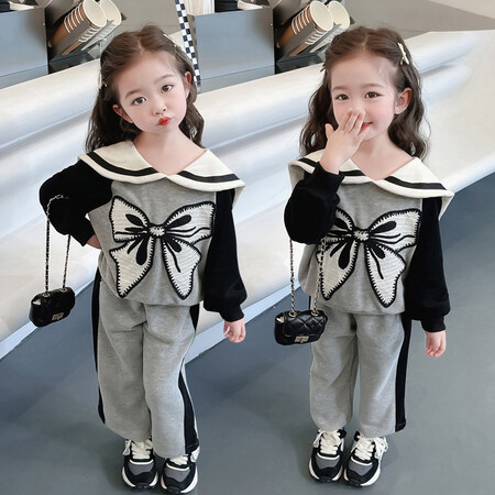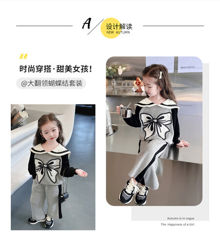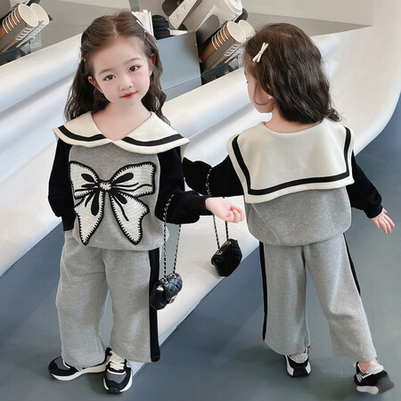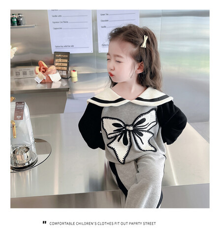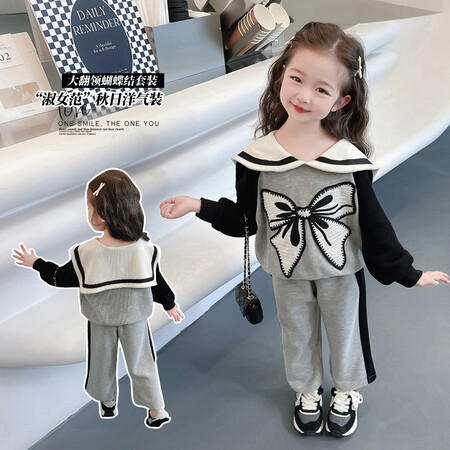 女童娃娃领蝴蝶结套装新款时髦儿童衣服洋气女宝宝两件套秋冬