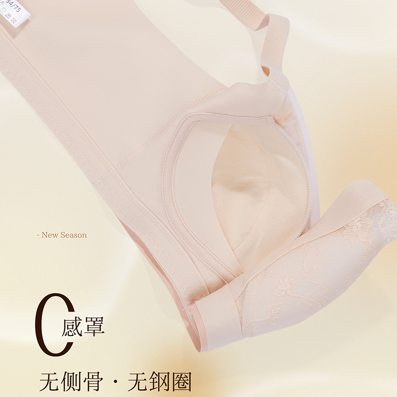 内衣女无侧骨无钢圈性感蕾丝薄杯文胸聚拢舒适无感调整型收副乳罩