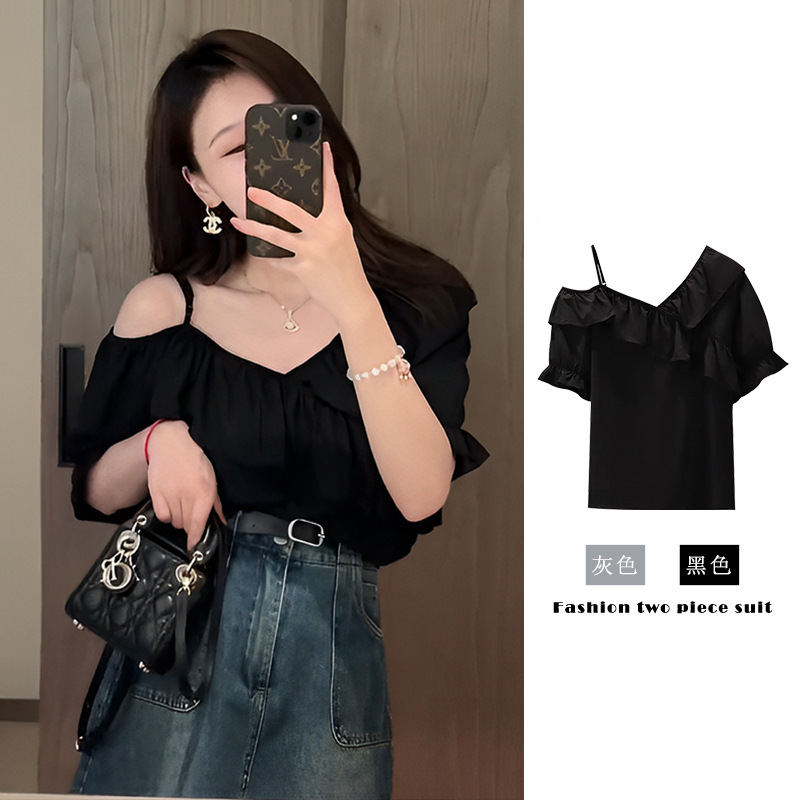 黑色气质雪纺衬衫短袖上衣女夏季新款设计感小众法式轻熟别致
