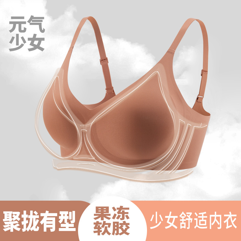 新款无痕内衣女果冻胶软支撑薄款固定杯小胸聚拢上托透气运动文胸