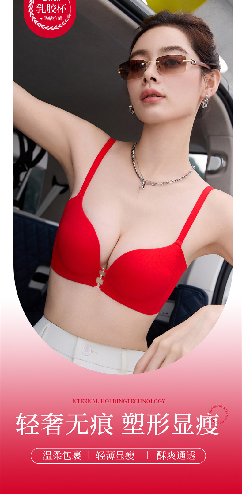 小胸显大聚拢乳胶内衣女无钢圈舒适镂空无痕文胸光面胸罩侧收副乳