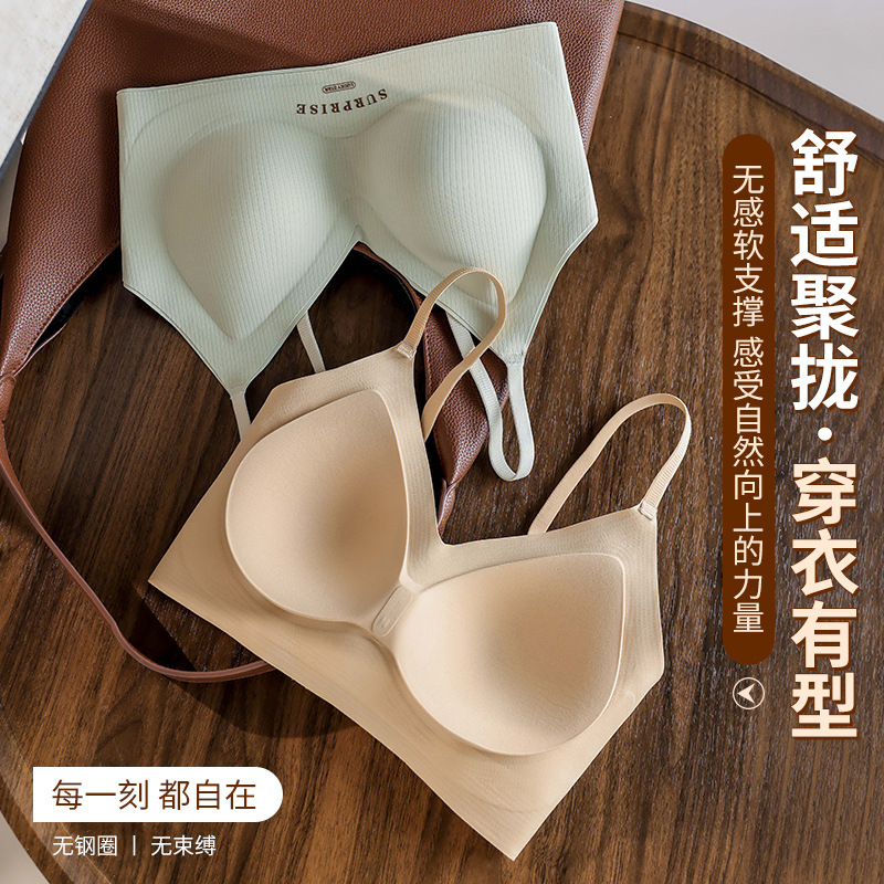 背心式无痕内衣女果冻胶软支撑固定杯小胸聚拢薄杯性感无钢圈文胸