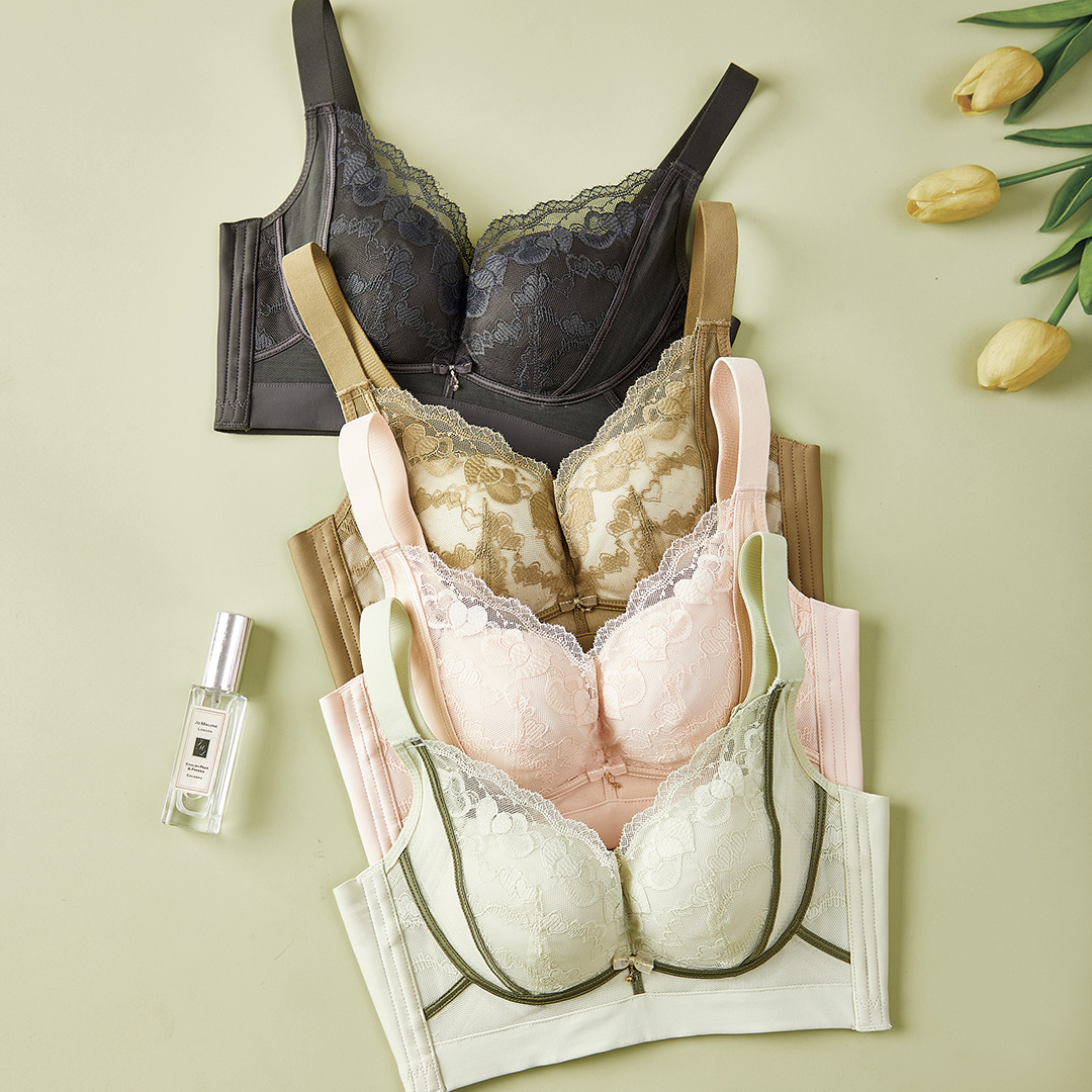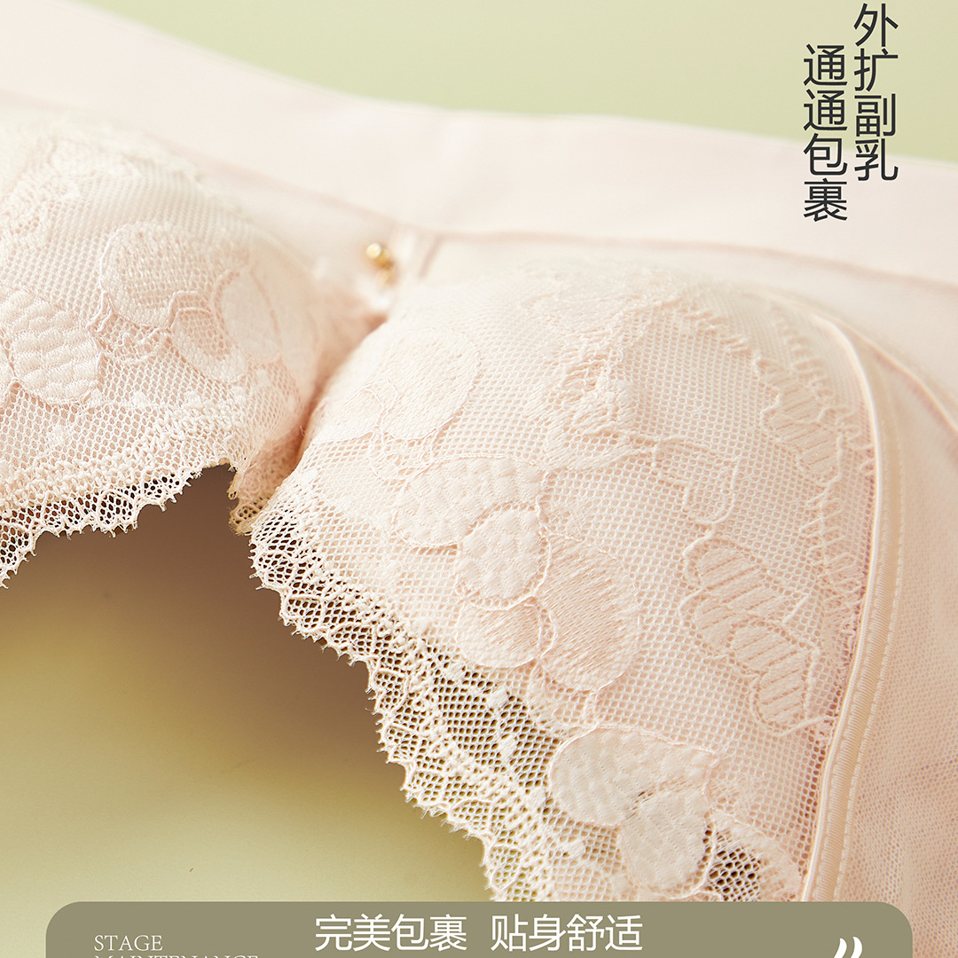 调整型内衣女无钢圈性感蕾丝按摩杯小胸聚拢防下垂收副乳文胸