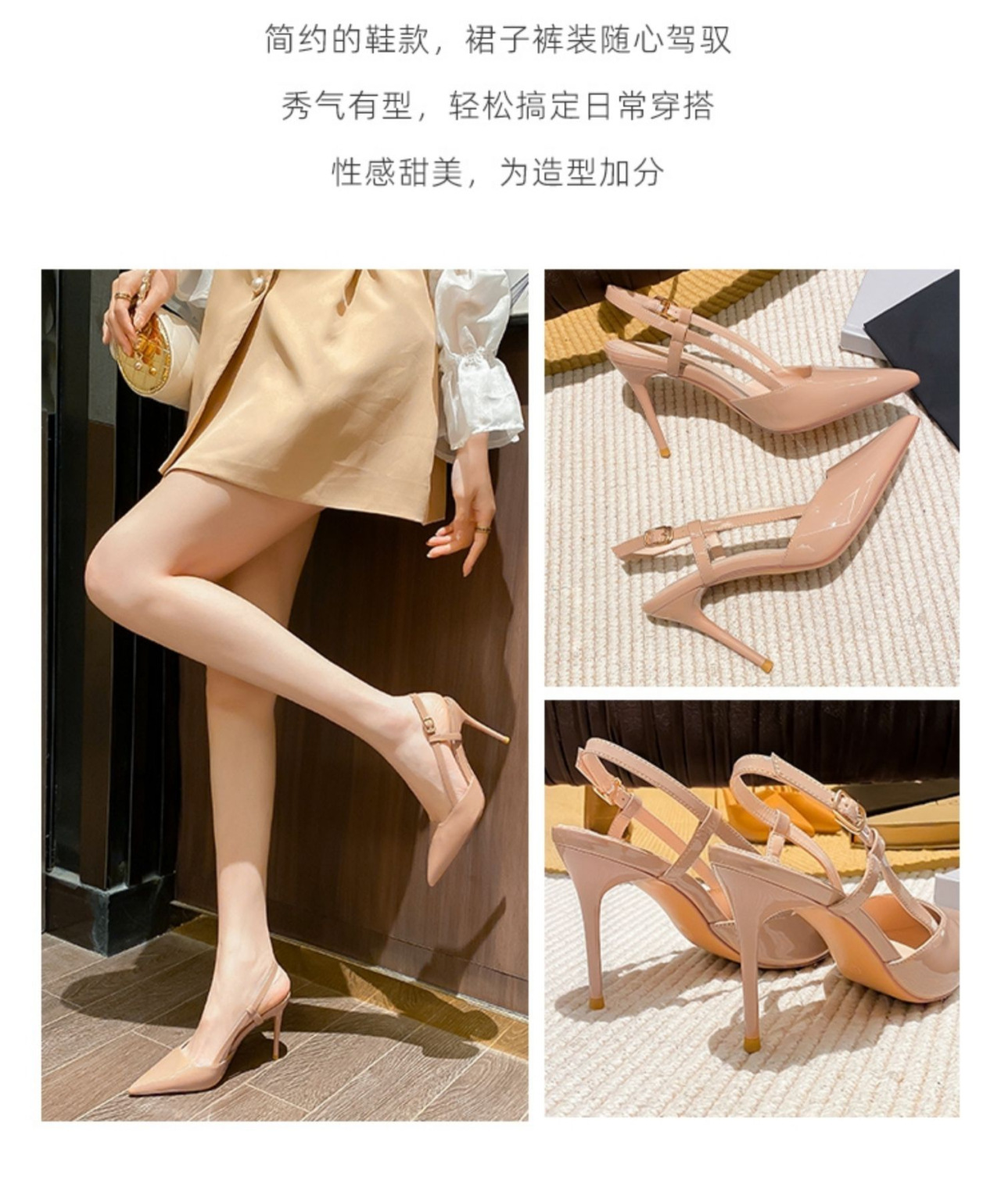 法式高跟鞋女款夏季细跟仙女风不累脚气质名媛配裙子杏色包头凉鞋