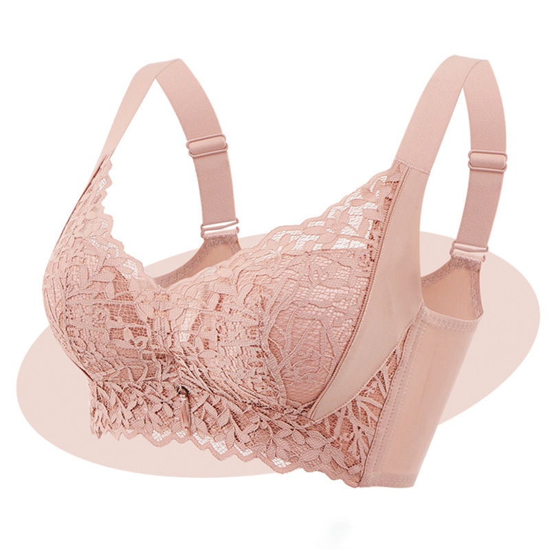 春夏季内衣女小胸聚拢防下垂无钢圈调整型透气蕾丝文胸收副乳胸罩